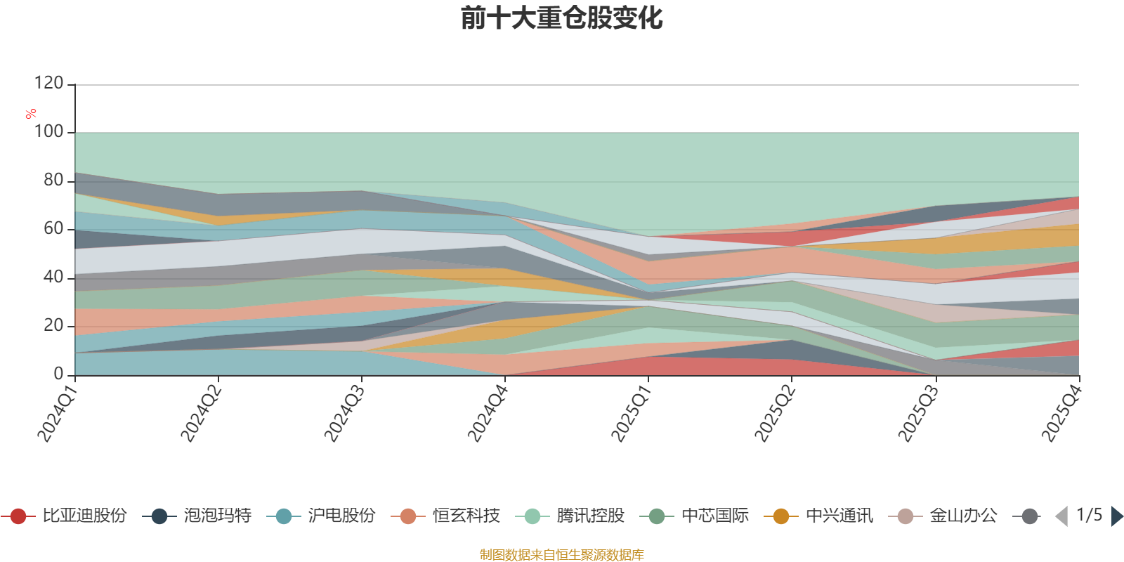 该基金持股集中度较高。截至2025年四季度末,基金十大重仓股分别是中际旭创、新易盛、源杰科技、英维克、麦格米特、欧陆通、生益科技、长芯博创、仕佳光子、腾景科技。