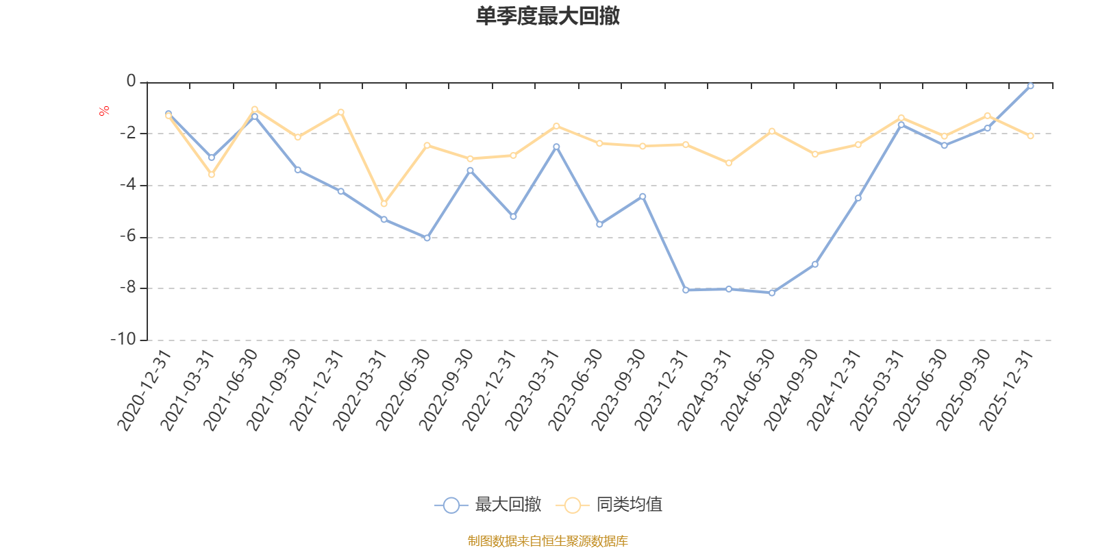 通过所选区间该基金净值增长率分位图,可以观察该基金与同类基金业绩比较情况。图为坐标原点到区间内某时点的净值增长率在同类基金中的分位数。