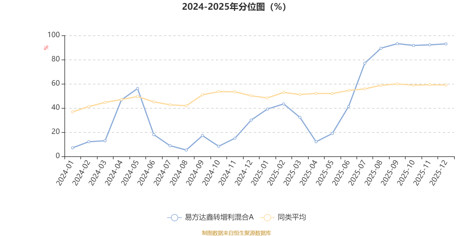 通过所选区间该基金净值增长率分位图,可以观察该基金与同类基金业绩比较情况。图为坐标原点到区间内某时点的净值增长率在同类基金中的分位数。