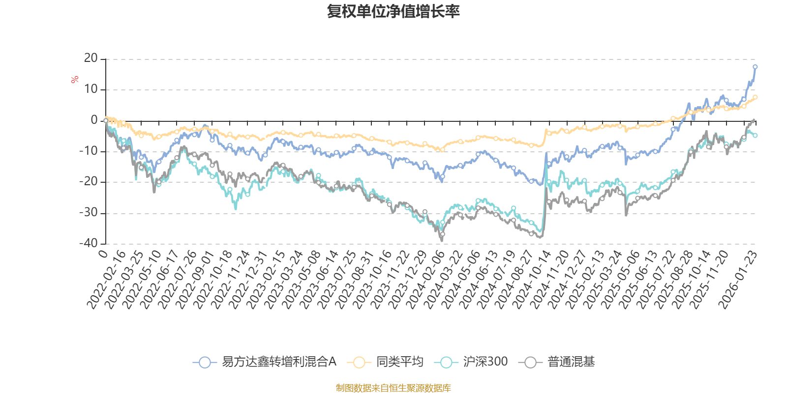 截至1月23日,易方达鑫转增利混合A近三个月复权单位净值增长率为14.28%,位于同类可比基金10/629;近半年复权单位净值增长率为21.08%,位于同类可比基金19/629;近一年复权单位净值增长率为30.72%,位于同类可比基金17/626;近三年复权单位净值增长率为24.83%,位于同类可比基金53/564。
