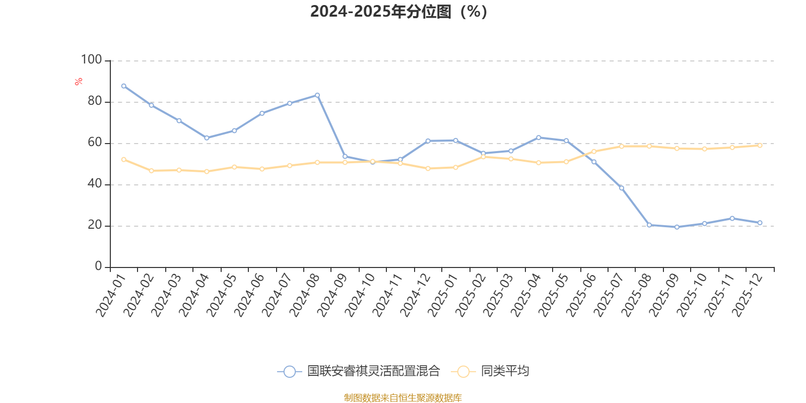 通过所选区间该基金净值增长率分位图,可以观察该基金与同类基金业绩比较情况。图为坐标原点到区间内某时点的净值增长率在同类基金中的分位数。