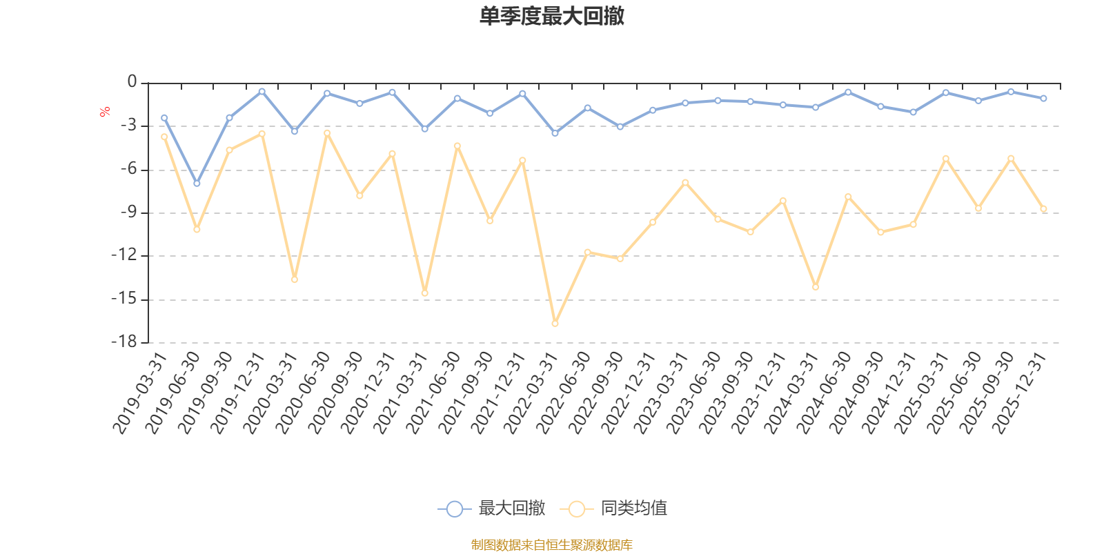 截至1月21日,基金近三年最大回撤为2.84%,同类可比基金排名40/1264。单季度最大回撤出现在2019年二季度,为6.97%。