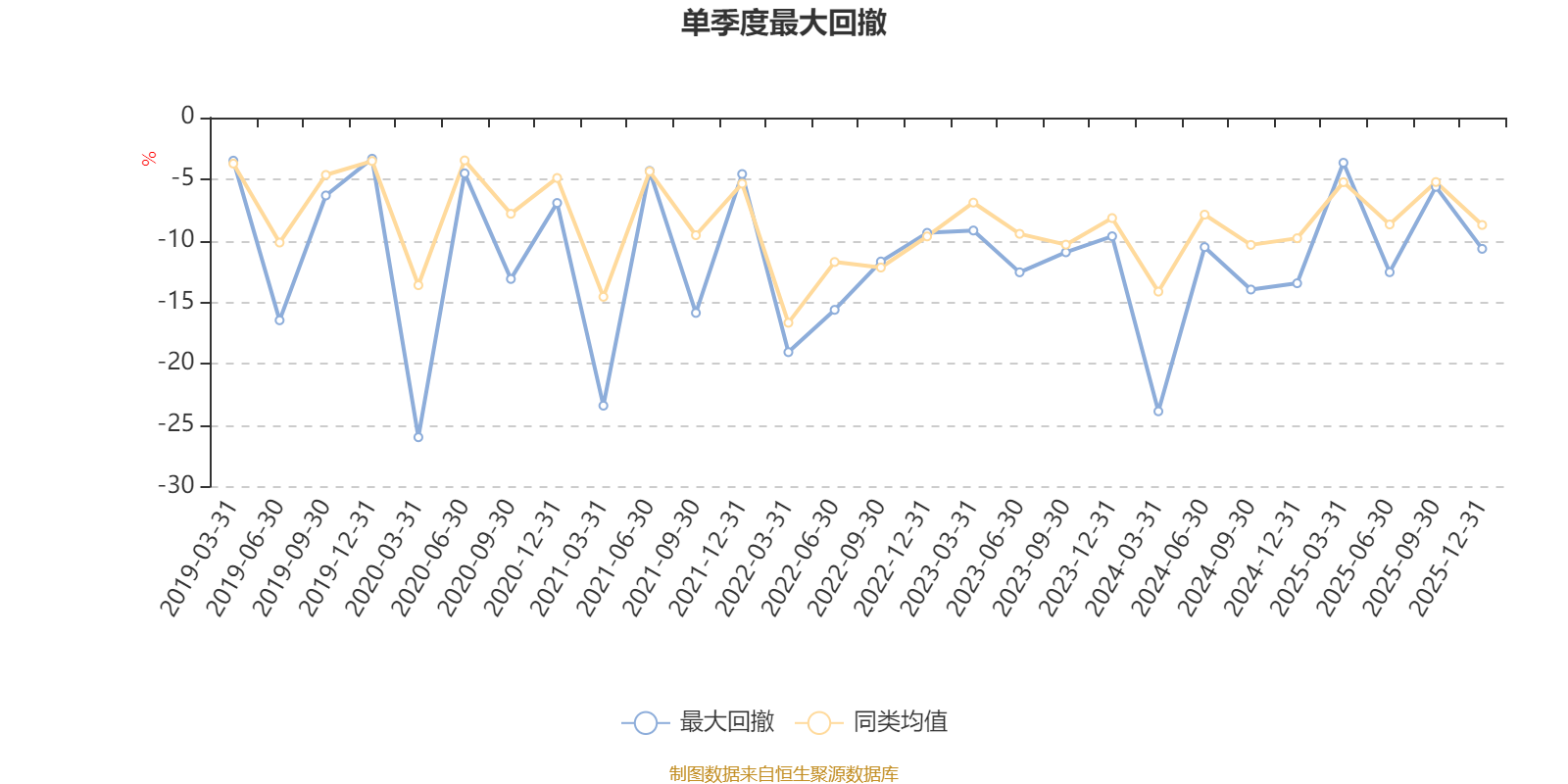 通过所选区间该基金净值增长率分位图,可以观察该基金与同类基金业绩比较情况。图为坐标原点到区间内某时点的净值增长率在同类基金中的分位数。