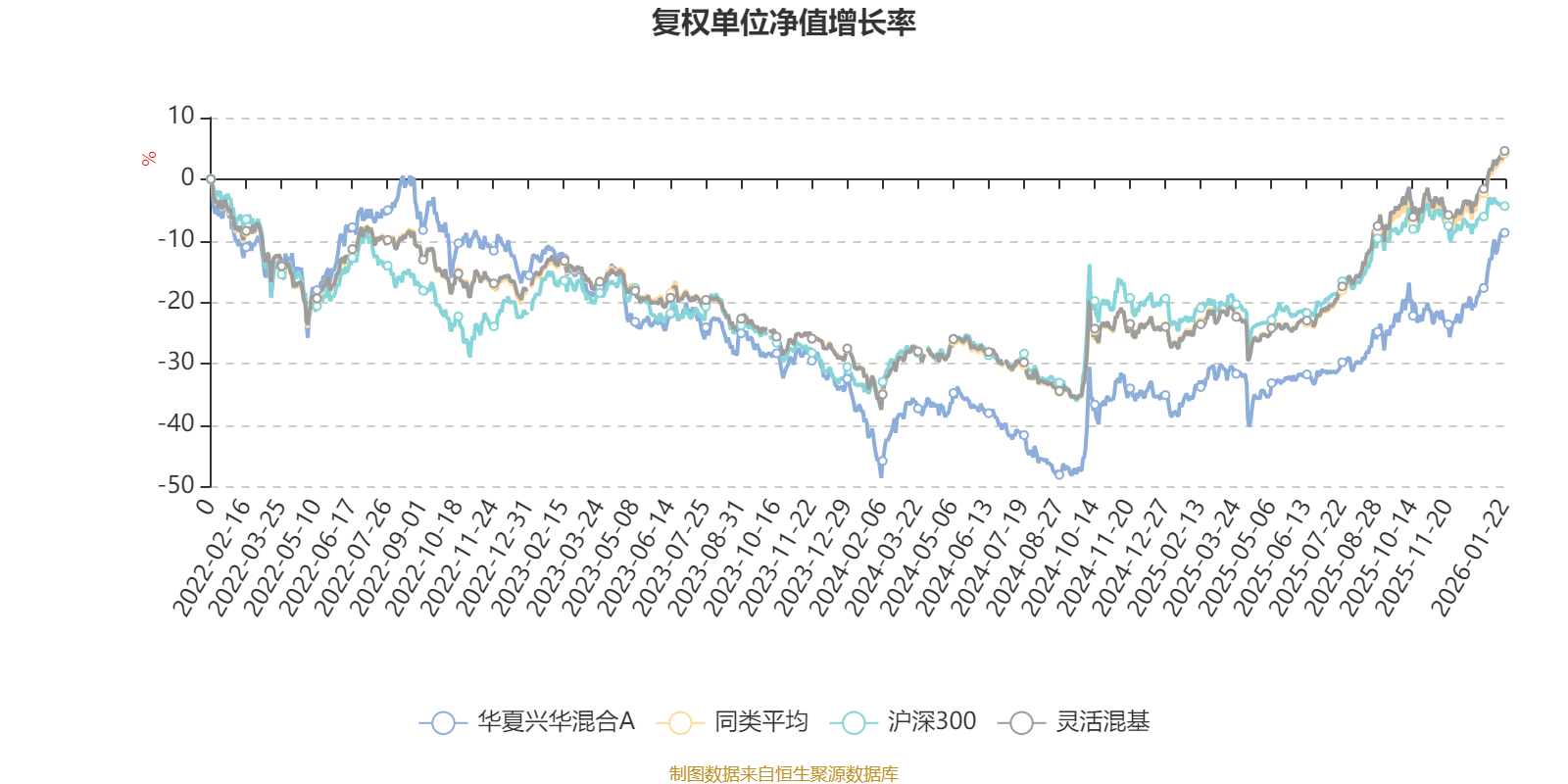 截至1月22日,华夏兴华混合A近三个月复权单位净值增长率为18.27%,位于同类可比基金172/1286;近半年复权单位净值增长率为30.01%,位于同类可比基金443/1286;近一年复权单位净值增长率为41.20%,位于同类可比基金491/1286;近三年复权单位净值增长率为2.65%,位于同类可比基金972/1286。