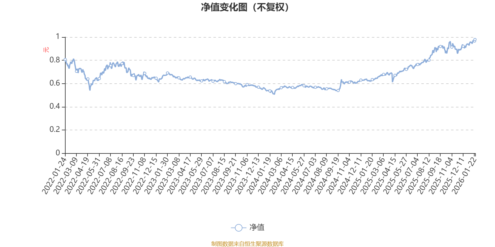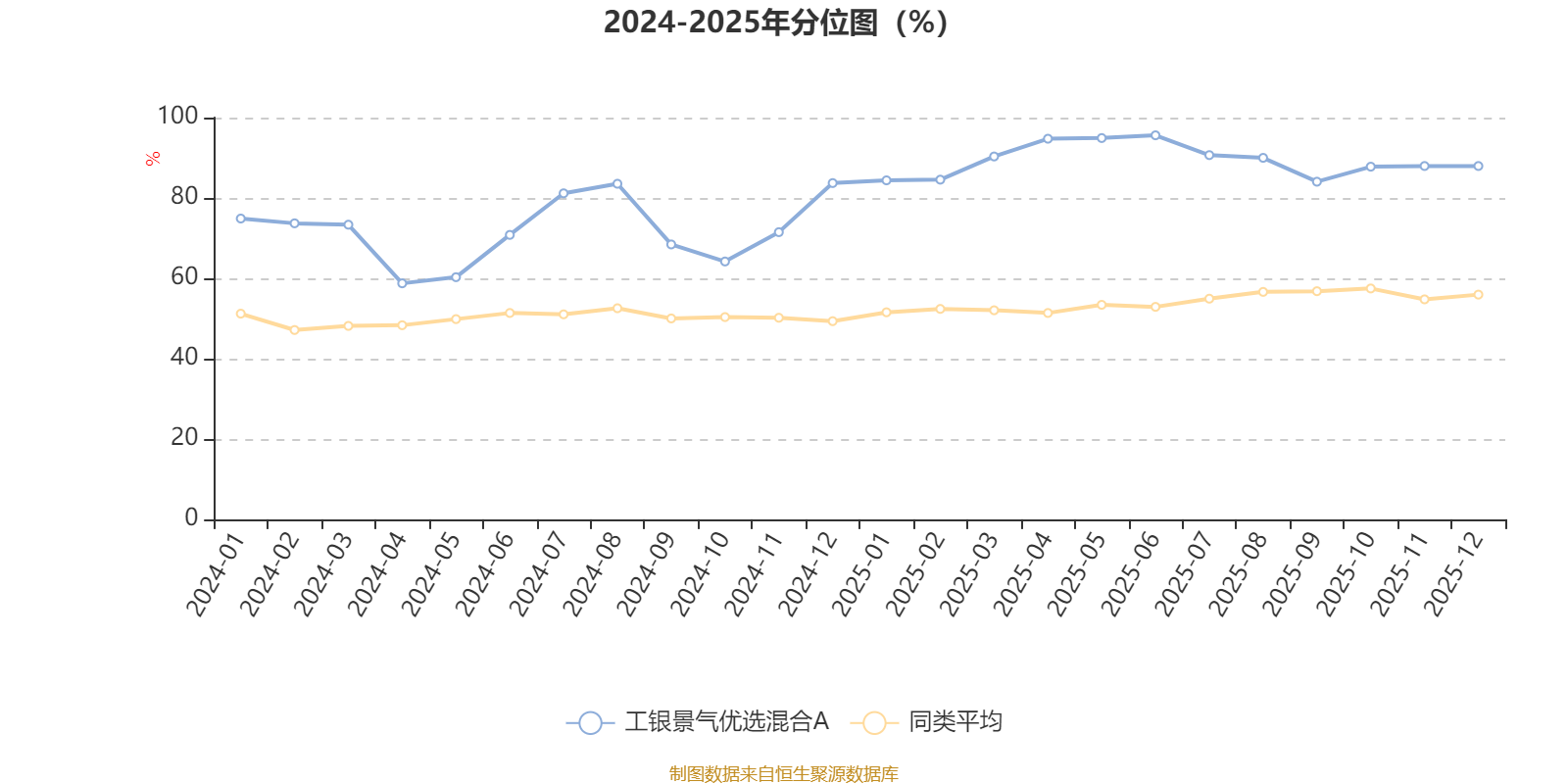 通过所选区间该基金净值增长率分位图,可以观察该基金与同类基金业绩比较情况。图为坐标原点到区间内某时点的净值增长率在同类基金中的分位数。