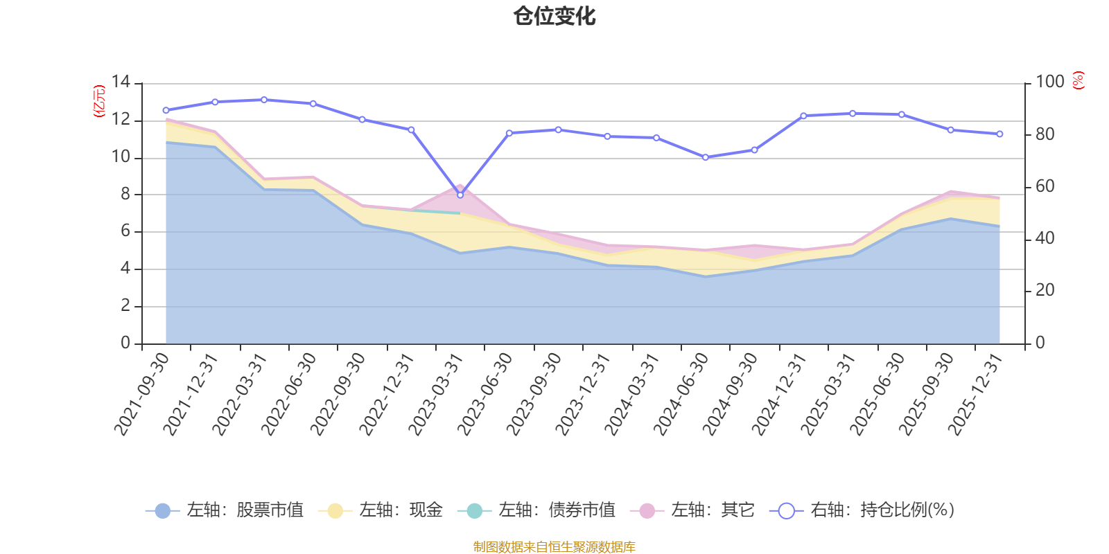 据定期报告数据统计,近三年平均股票仓位为79.23%,同类平均为85.83%。2022年一季度末基金达到93.61%的最高仓位,2023年一季度末最低,为57.04%。