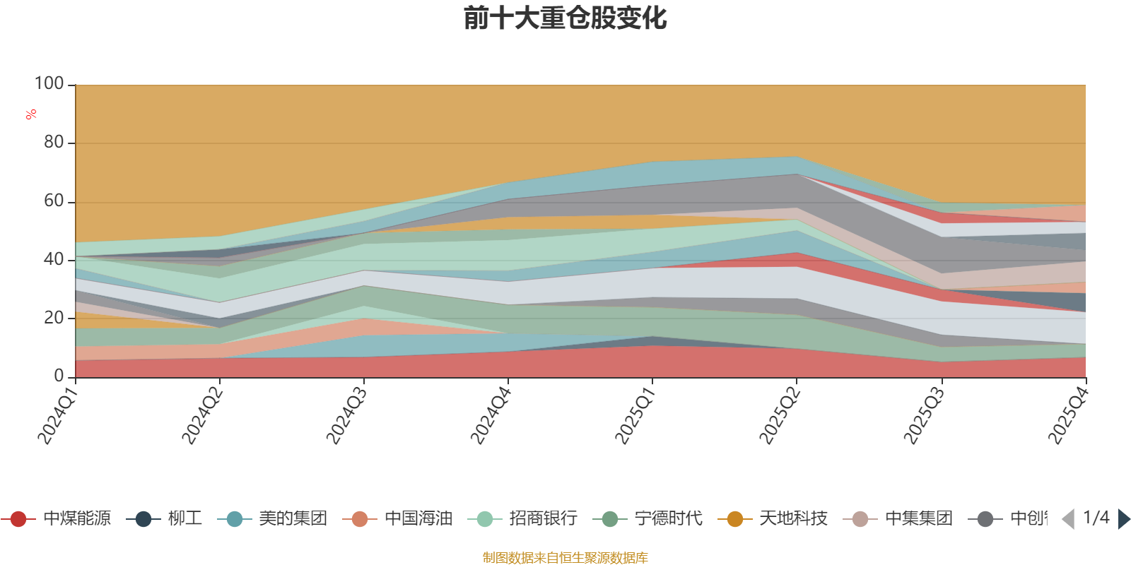 截至2025年四季度末,基金十大重仓股分别是徐工机械、紫金矿业、中煤能源、思源电气、杰瑞股份、山推股份、宁德时代、亿纬锂能、三星医疗、阳光电源。