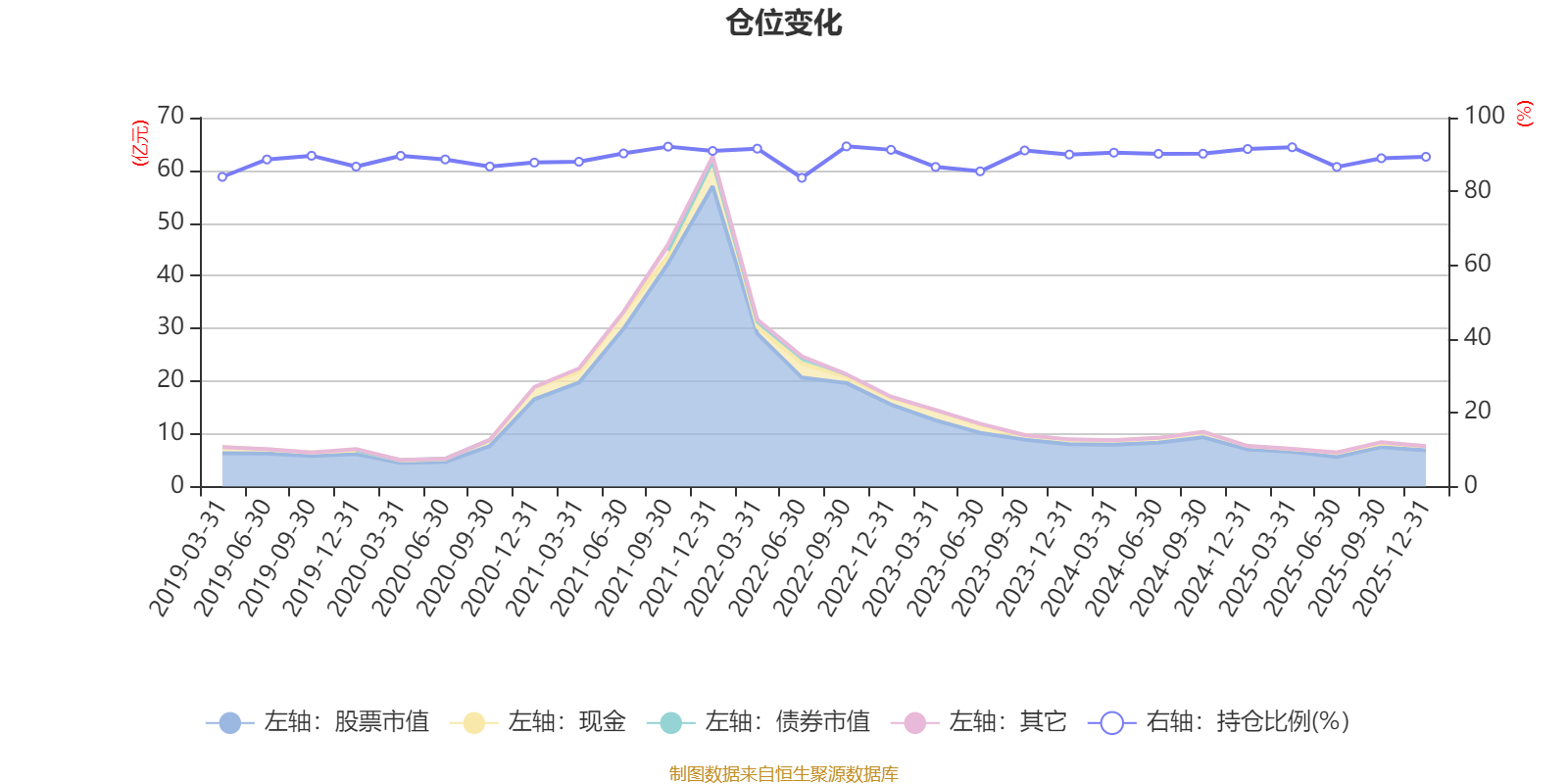 据定期报告数据统计,近三年平均股票仓位为89.38%,同类平均为86.12%。2022年三季度末基金达到92.2%的最高仓位,2022年上半年末最低,为83.67%。