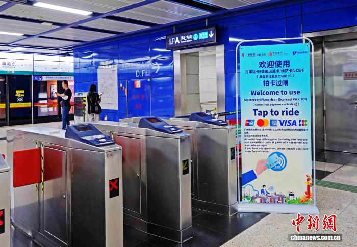 广州地铁近400个站点约9000台闸机支持境外银行卡“拍卡”过闸。广州市委金融办供图