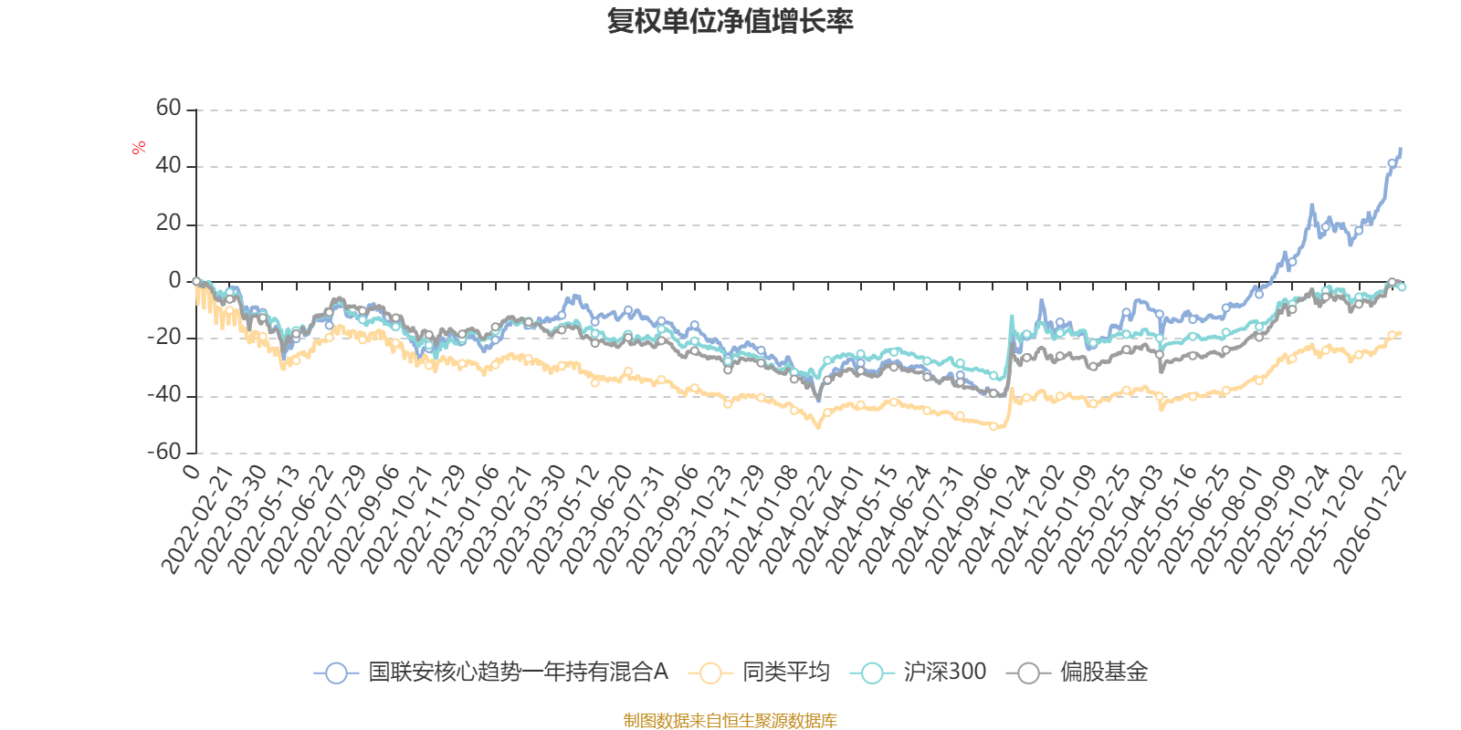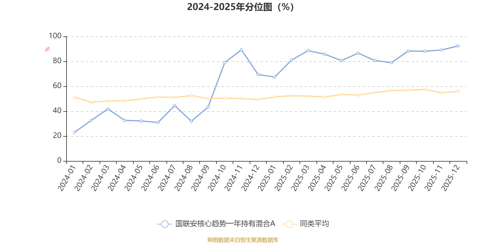 截至1月21日,国联安核心趋势一年持有混合A近三个月复权单位净值增长率为25.39%,位于同类可比基金15/621;近半年复权单位净值增长率为56.17%,位于同类可比基金40/621;近一年复权单位净值增长率为82.56%,位于同类可比基金25/613;近三年复权单位净值增长率为72.79%,位于同类可比基金30/535。