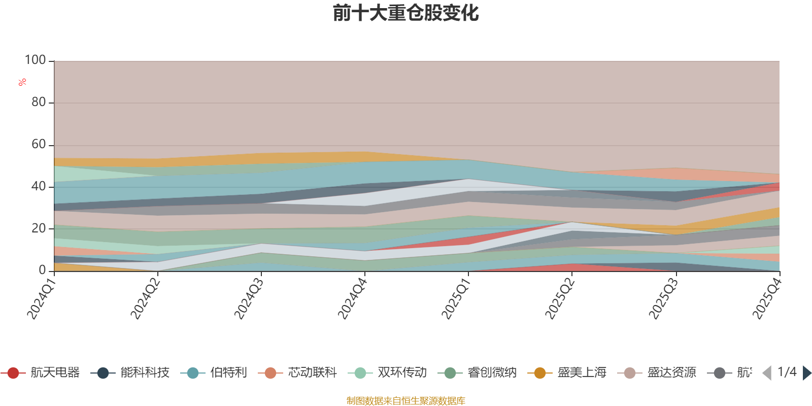 截至2025年四季度末,基金十大重仓股分别是紫金矿业、航宇科技、盛达资源、华友钴业、伯特利、澜起科技、中微公司、华峰测控、双环传动、芯动联科。