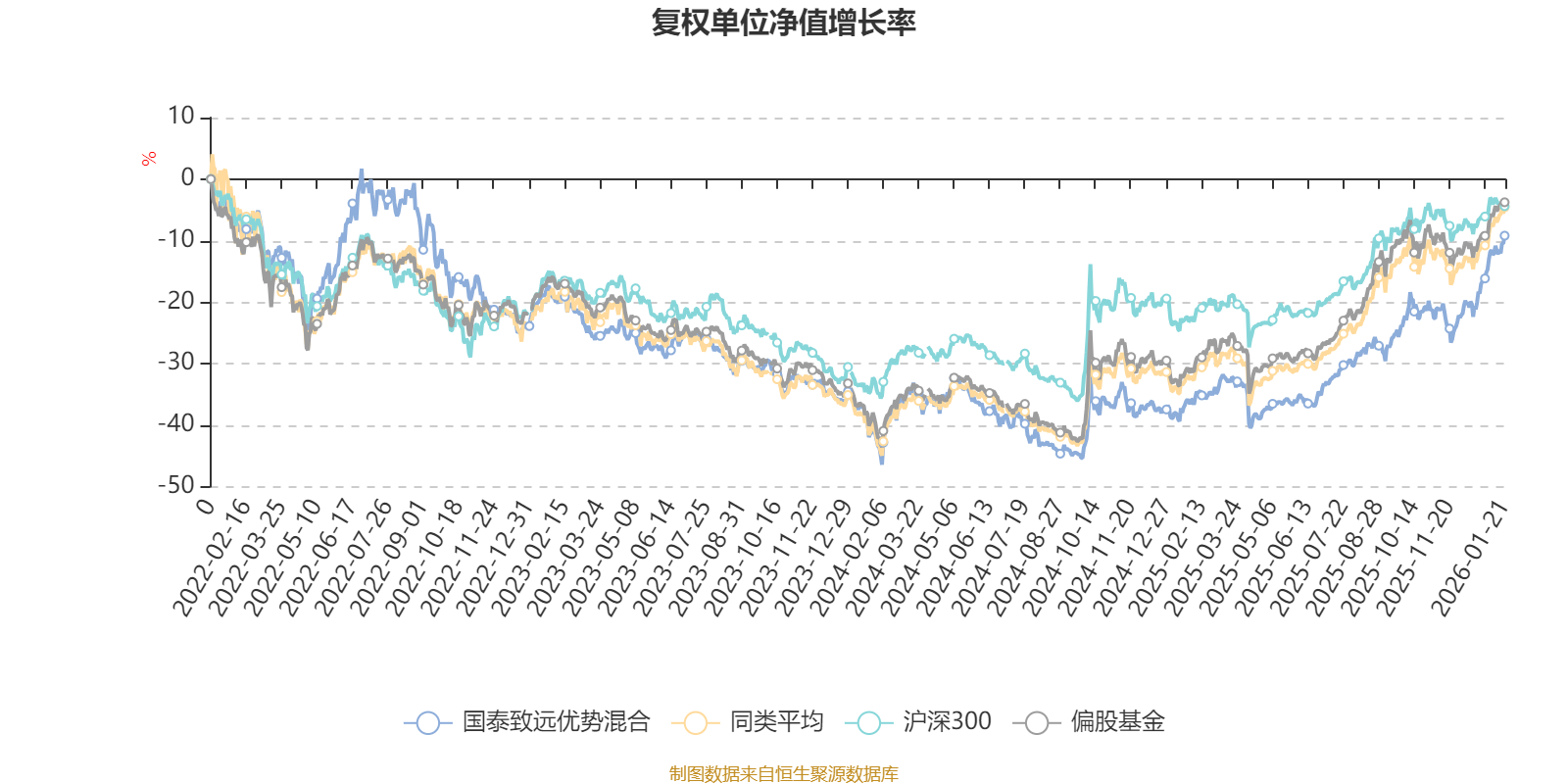 截至1月21日,国泰致远优势混合近三个月复权单位净值增长率为15.60%,位于同类可比基金32/265;近半年复权单位净值增长率为31.20%,位于同类可比基金88/265;近一年复权单位净值增长率为41.47%,位于同类可比基金112/265;近三年复权单位净值增长率为10.13%,位于同类可比基金175/256。