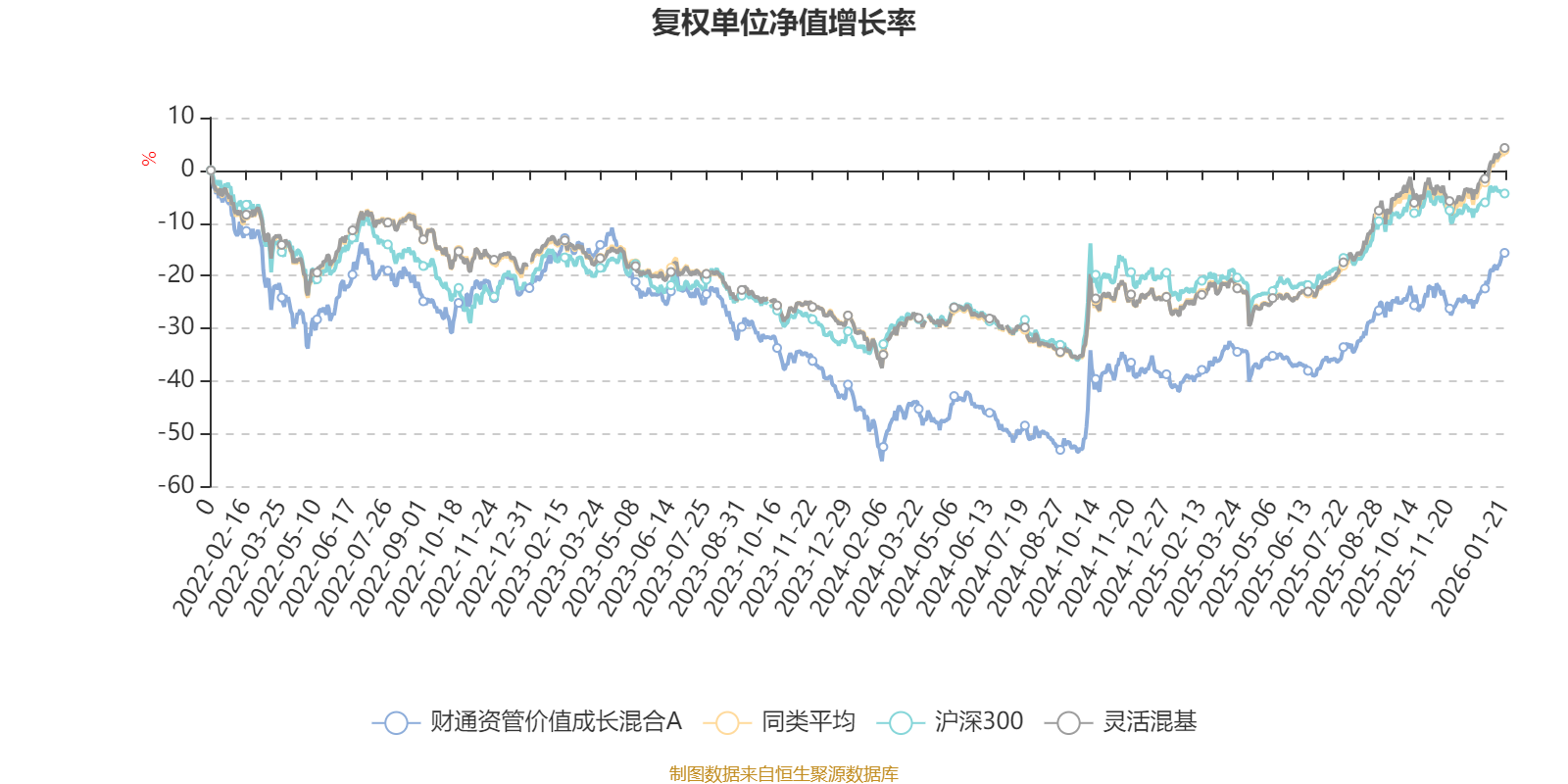 截至1月21日,财通资管价值成长混合A近三个月复权单位净值增长率为13.16%,位于同类可比基金334/1286;近半年复权单位净值增长率为29.31%,位于同类可比基金457/1286;近一年复权单位净值增长率为37.75%,位于同类可比基金527/1286;近三年复权单位净值增长率为2.04%,位于同类可比基金979/1286。