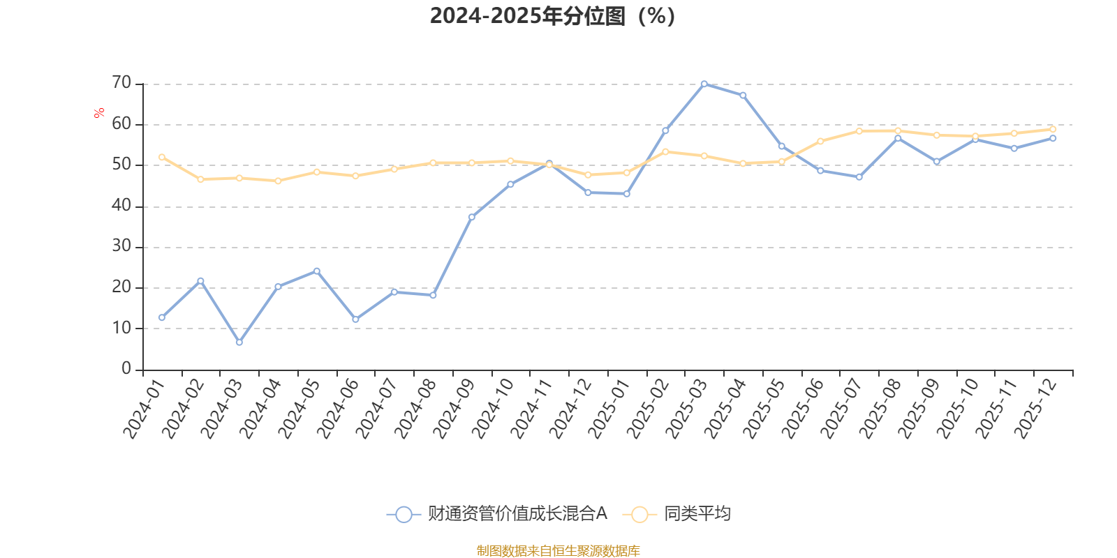 通过所选区间该基金净值增长率分位图,可以观察该基金与同类基金业绩比较情况。图为坐标原点到区间内某时点的净值增长率在同类基金中的分位数。