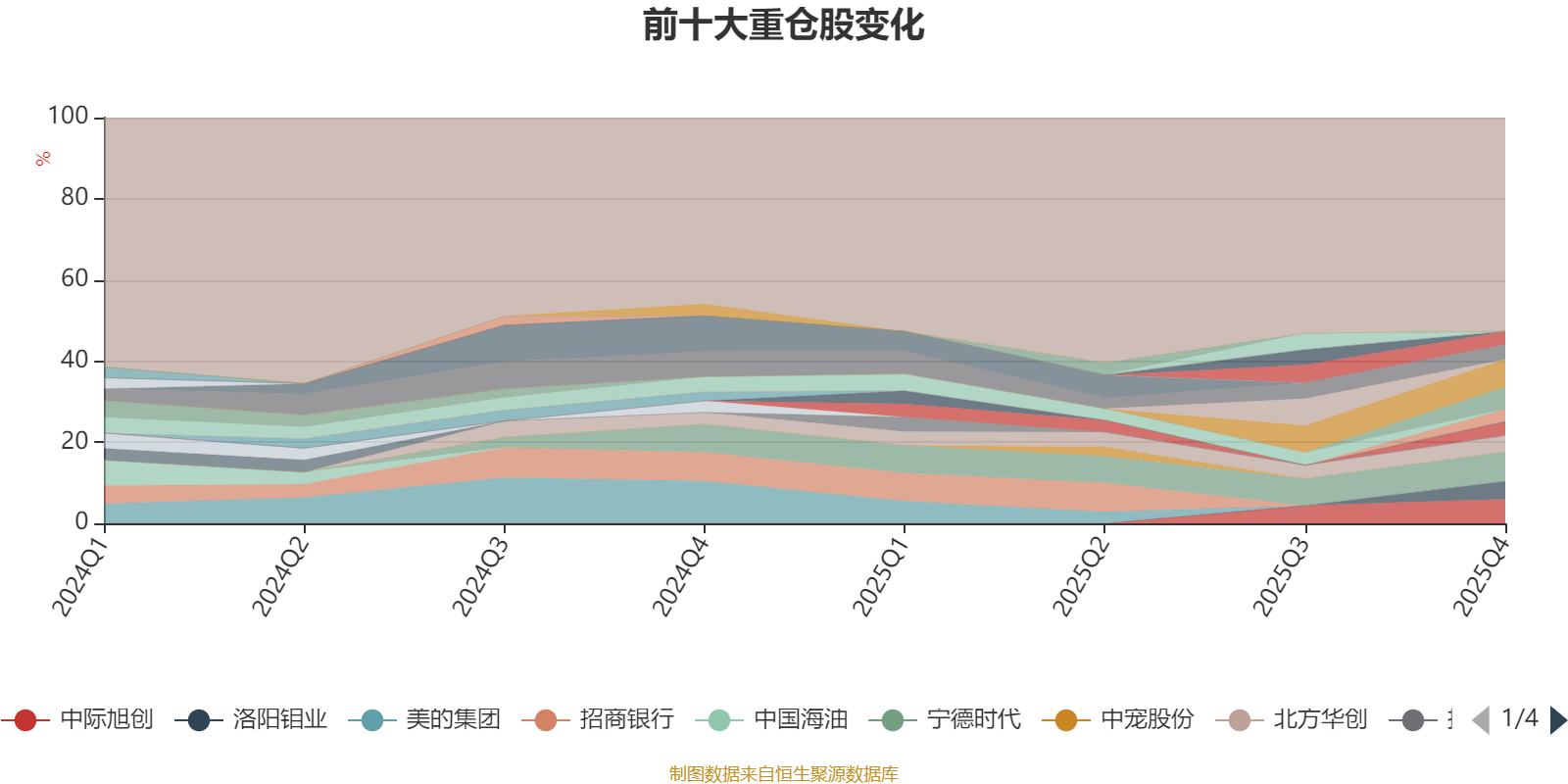 截至2025年四季度末,基金十大重仓股分别是宁德时代、新易盛、中际旭创、紫金矿业、洛阳钼业、北方华创、立讯精密、徐工机械、银轮股份、藏格矿业。