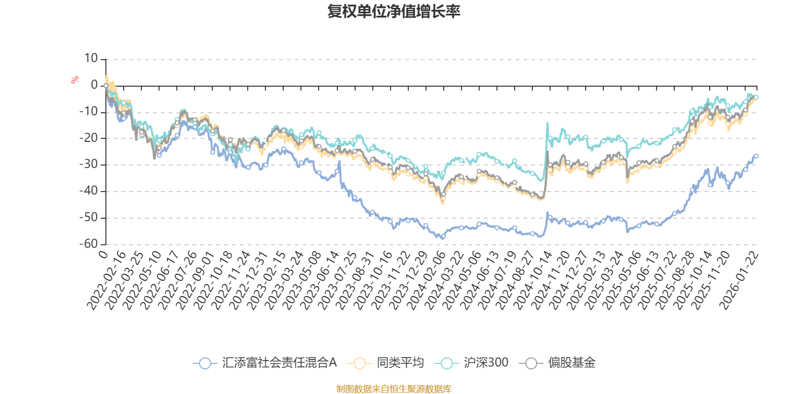截至1月22日,汇添富社会责任混合A近三个月复权单位净值增长率为13.91%,位于同类可比基金60/265;近半年复权单位净值增长率为41.83%,位于同类可比基金38/265;近一年复权单位净值增长率为53.16%,位于同类可比基金63/265;近三年复权单位净值增长率为-2.19%,位于同类可比基金213/256。
