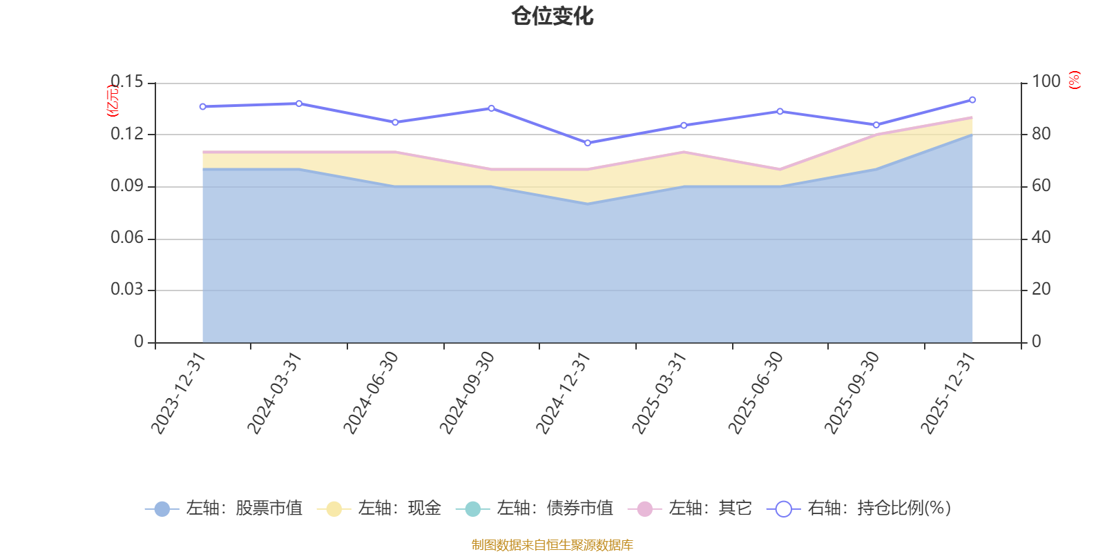 据定期报告数据统计,成立以来平均股票仓位为87.17%,同类平均为84.04%。2025年末基金达到93.46%的最高仓位,2024年末最低,为76.85%。