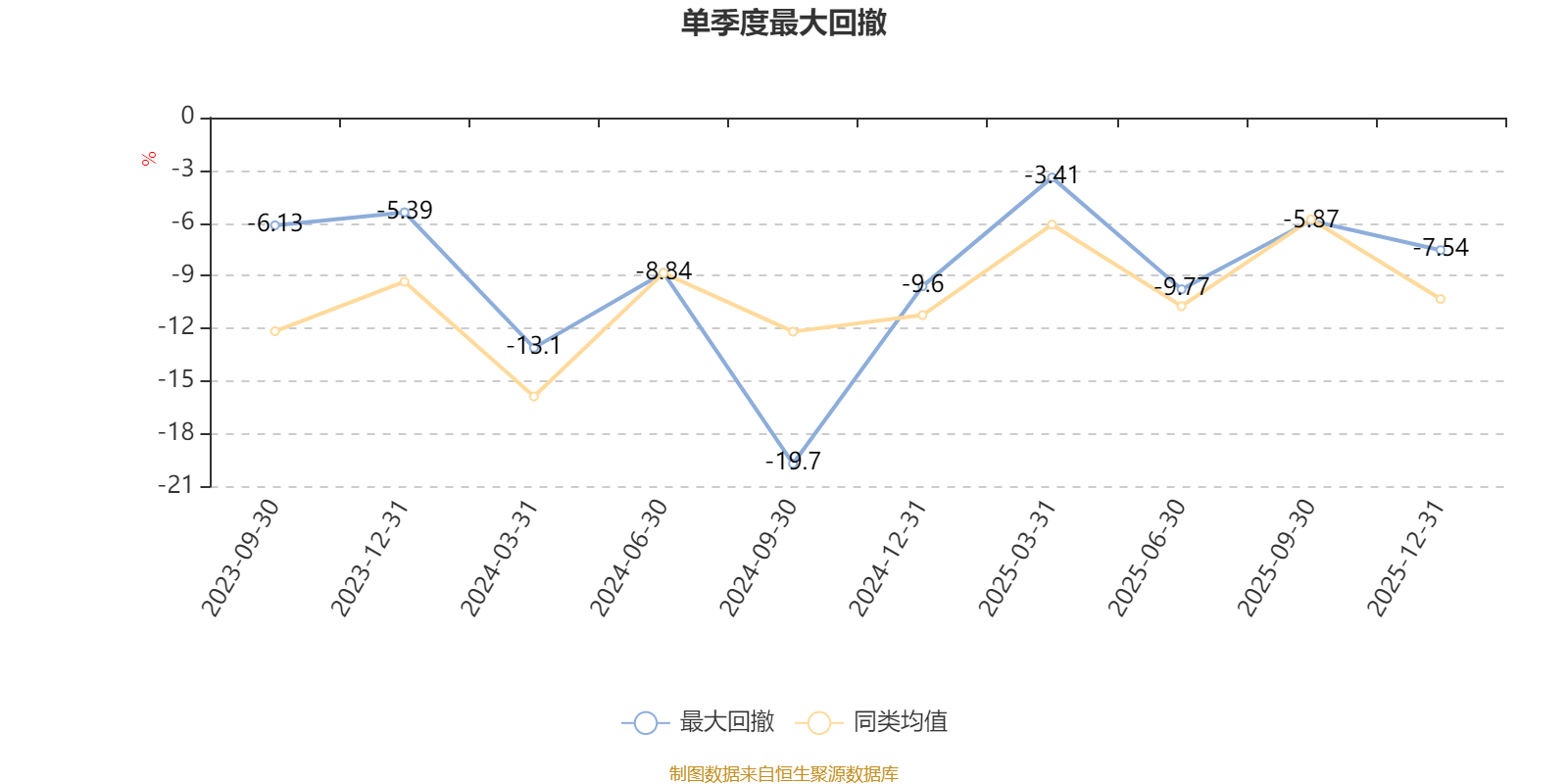 通过所选区间该基金净值增长率分位图,可以观察该基金与同类基金业绩比较情况。图为坐标原点到区间内某时点的净值增长率在同类基金中的分位数。