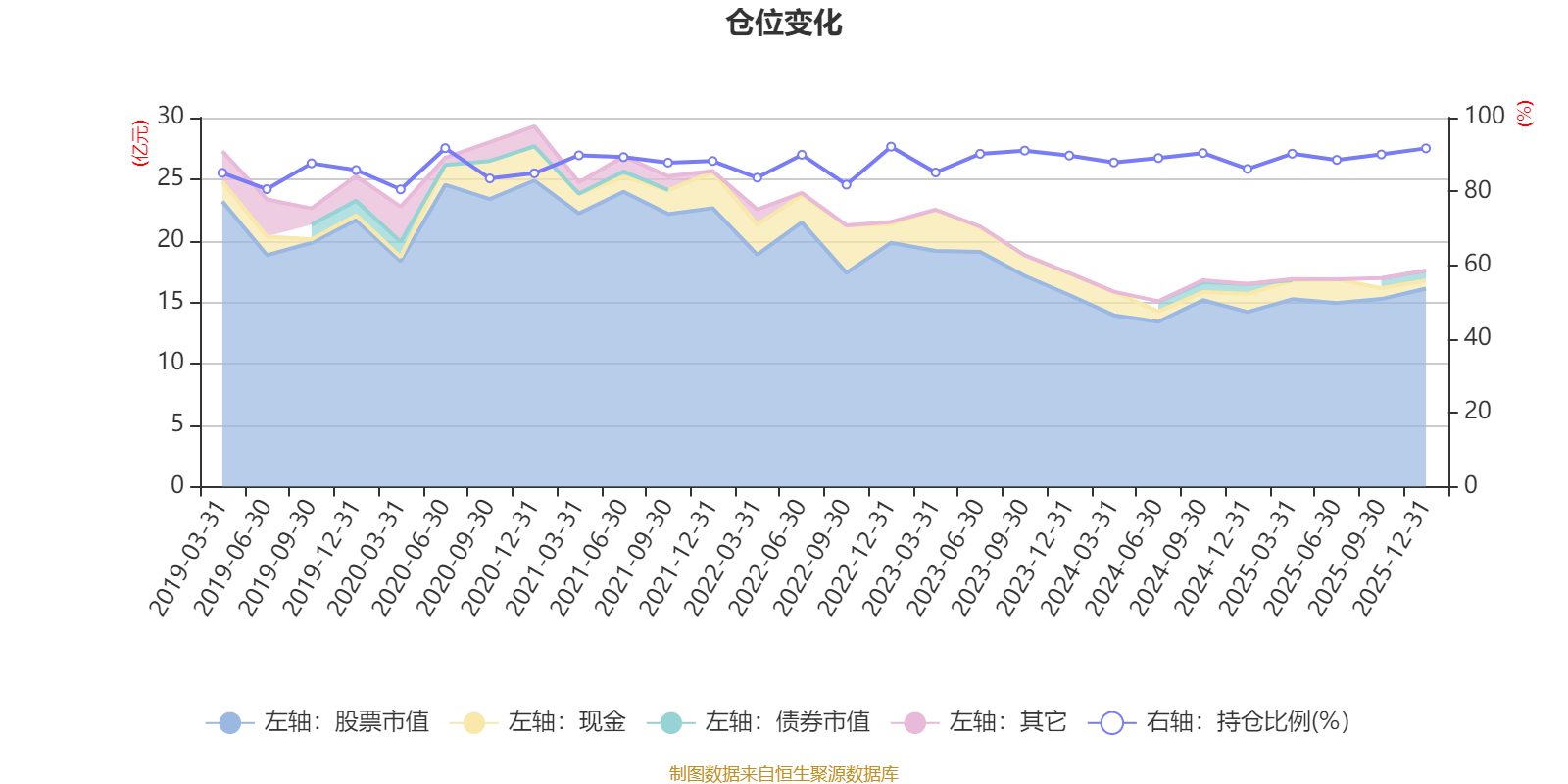 据定期报告数据统计,近三年平均股票仓位为89.16%,同类平均为87.64%。2022年末基金达到92.12%的最高仓位,2020年一季度末最低,为80.54%。