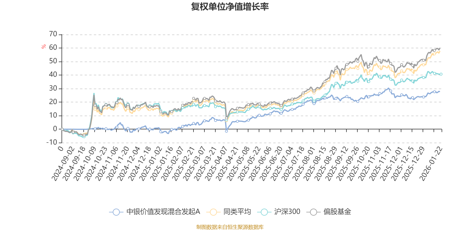 截至1月21日,中银价值发现混合发起A近三个月复权单位净值增长率为2.37%,位于同类可比基金553/689;近半年复权单位净值增长率为7.12%,位于同类可比基金600/689;近一年复权单位净值增长率为27.48%,位于同类可比基金456/673。
