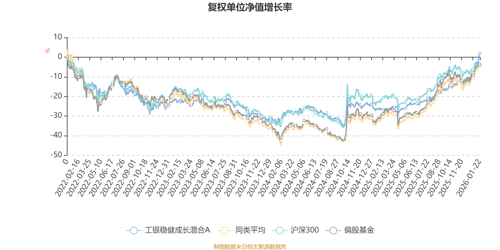 截至1月22日,工银稳健成长混合A近三个月复权单位净值增长率为19.97%,位于同类可比基金18/265;近半年复权单位净值增长率为28.27%,位于同类可比基金107/265;近一年复权单位净值增长率为39.30%,位于同类可比基金136/265;近三年复权单位净值增长率为29.80%,位于同类可比基金83/256。