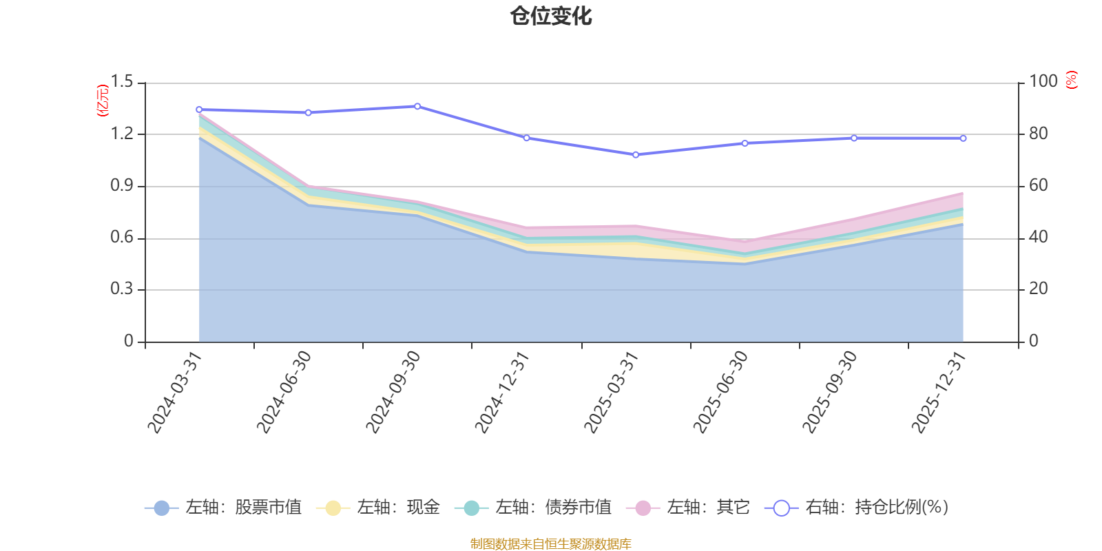 据定期报告数据统计,成立以来平均股票仓位为81.7%,同类平均为84.04%。2024年三季度末基金达到90.88%的最高仓位,2025年一季度末最低,为72.19%。