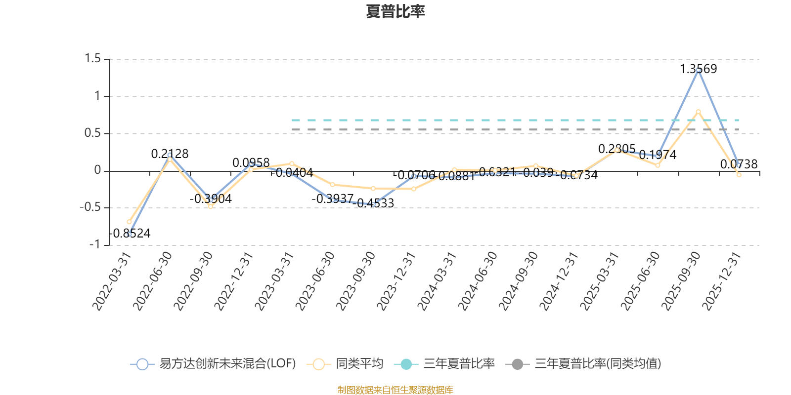 截至12月31日,基金近三年夏普比率为0.6796,位于同类可比基金42/125。