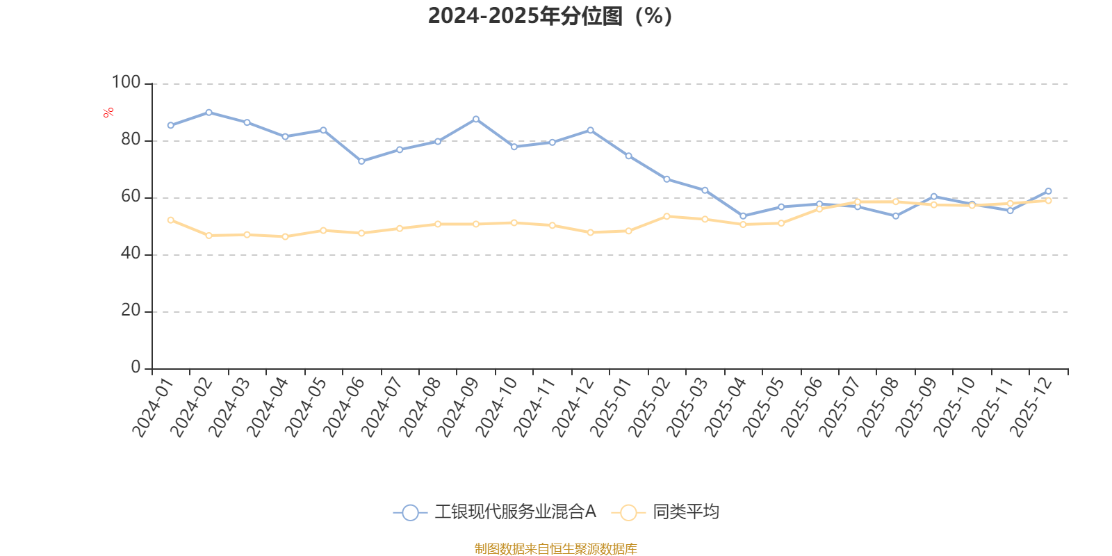 通过所选区间该基金净值增长率分位图,可以观察该基金与同类基金业绩比较情况。图为坐标原点到区间内某时点的净值增长率在同类基金中的分位数。
