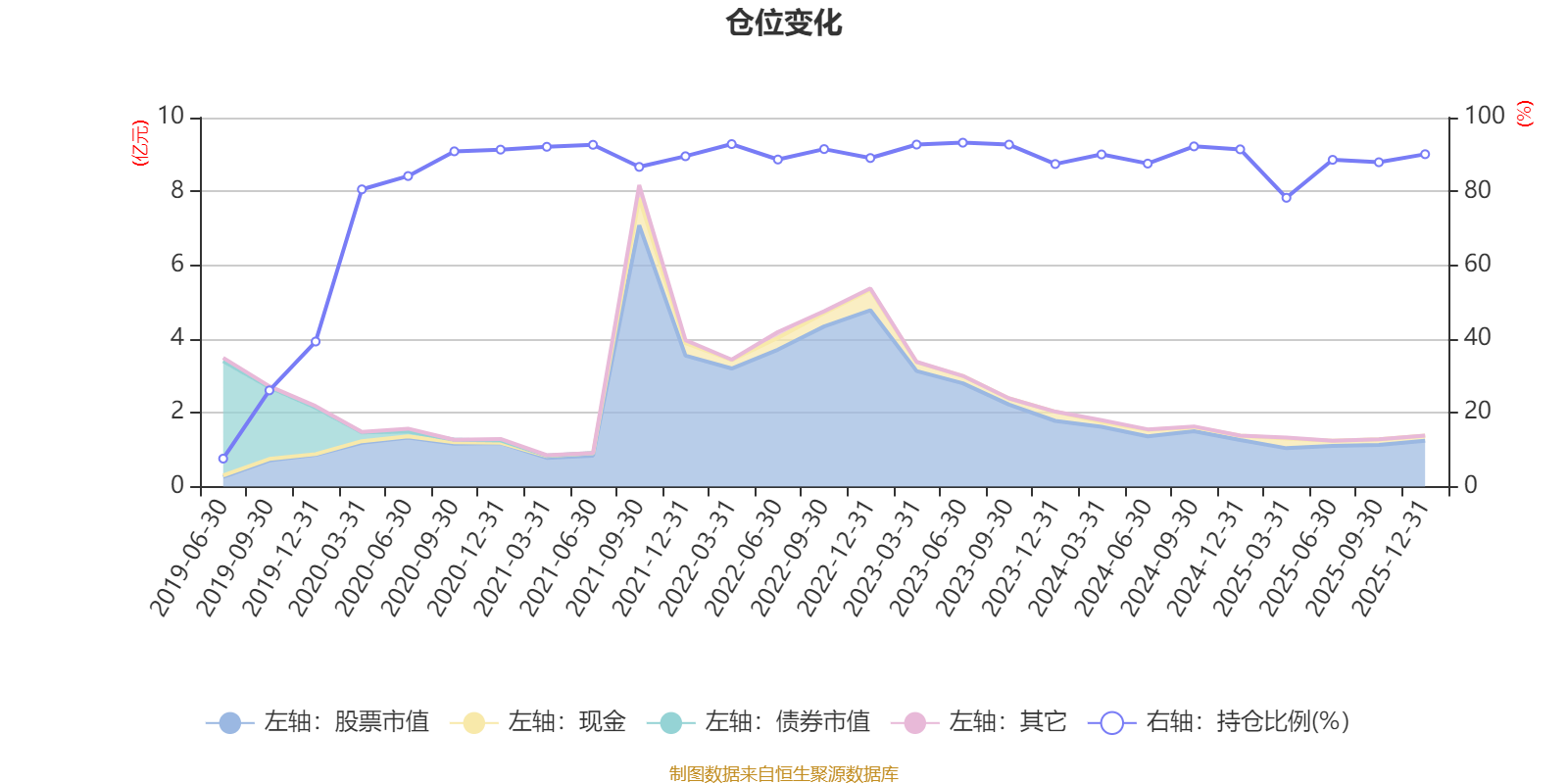 据定期报告数据统计,近三年平均股票仓位为89.33%,同类平均为72.57%。2023年上半年末基金达到93.2%的最高仓位,2019年上半年末最低,为7.58%。