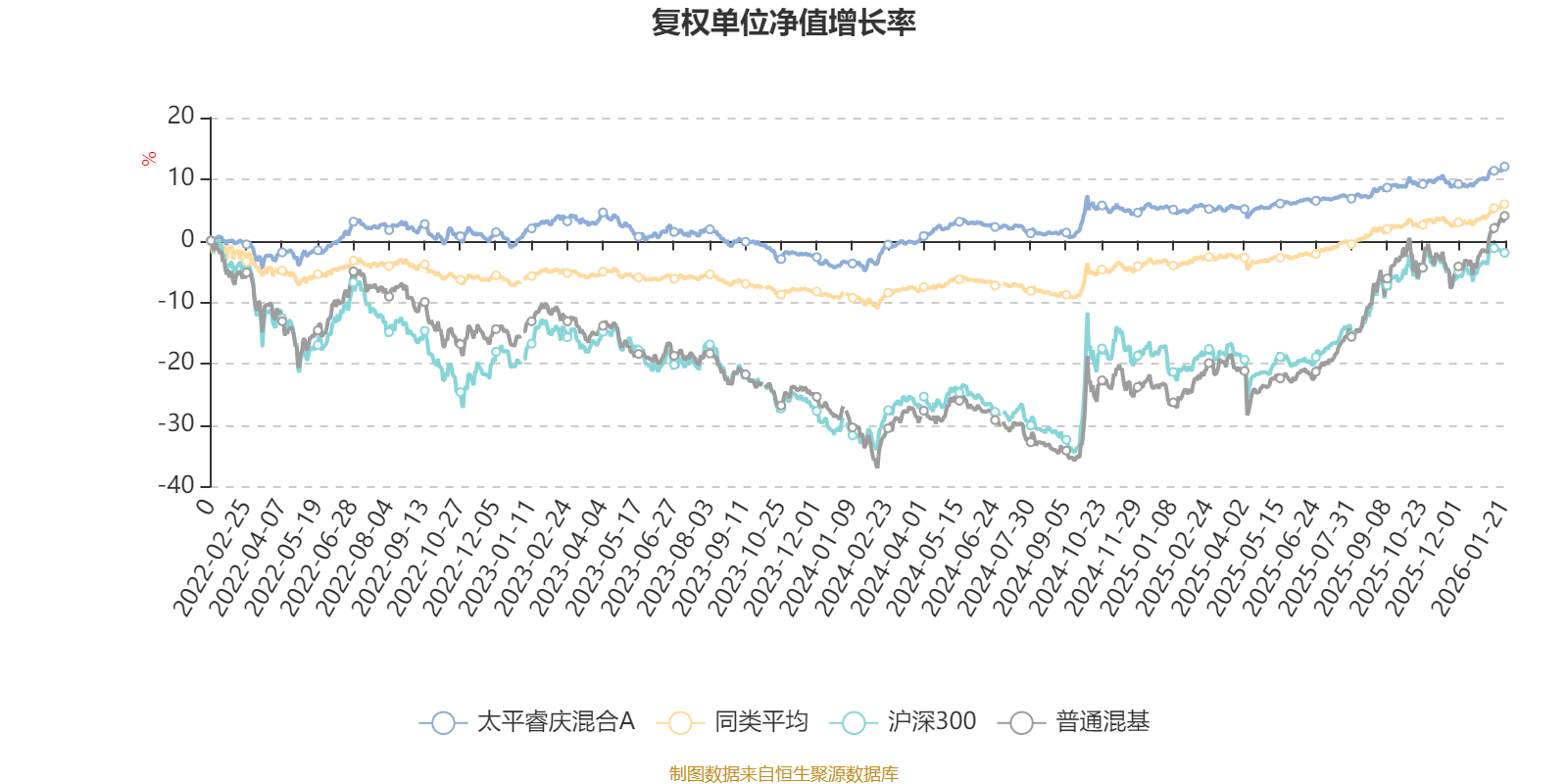 该基金属于偏债混合型基金。截至1月21日,单位净值为1.122元。基金经理是甘源,目前管理的3只基金近一年均为正收益。其中,截至1月21日,太平睿庆混合A近一年复权单位净值增长率最高,达6.79%;太平丰润一年定开债券发起式最低,为4.67%。