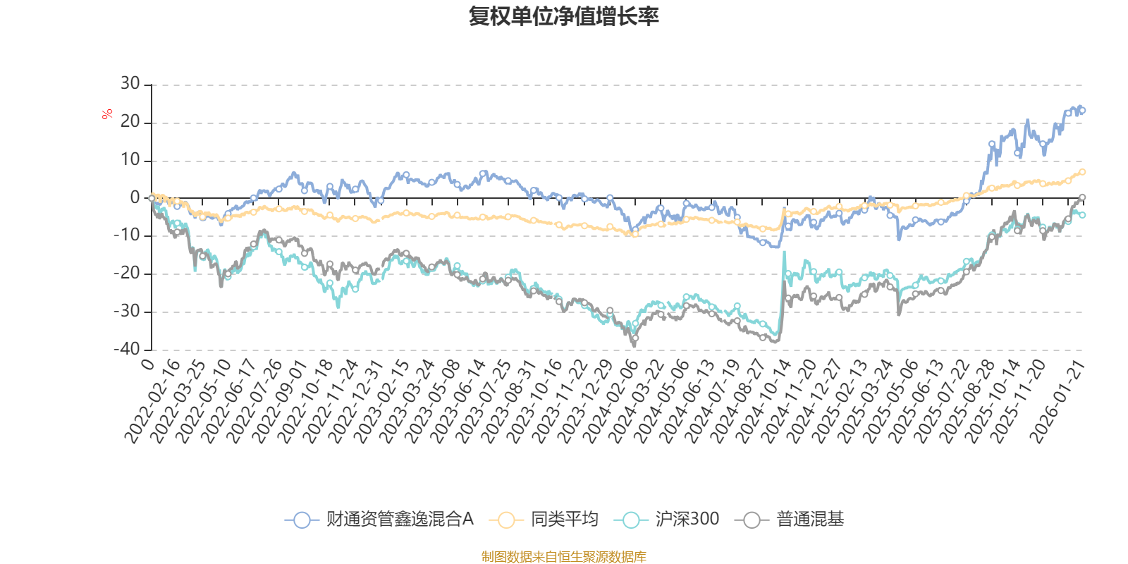 截至1月21日,财通资管鑫逸混合A近三个月复权单位净值增长率为7.52%,位于同类可比基金25/629;近半年复权单位净值增长率为24.12%,位于同类可比基金11/629;近一年复权单位净值增长率为27.52%,位于同类可比基金19/626;近三年复权单位净值增长率为17.36%,位于同类可比基金129/564。