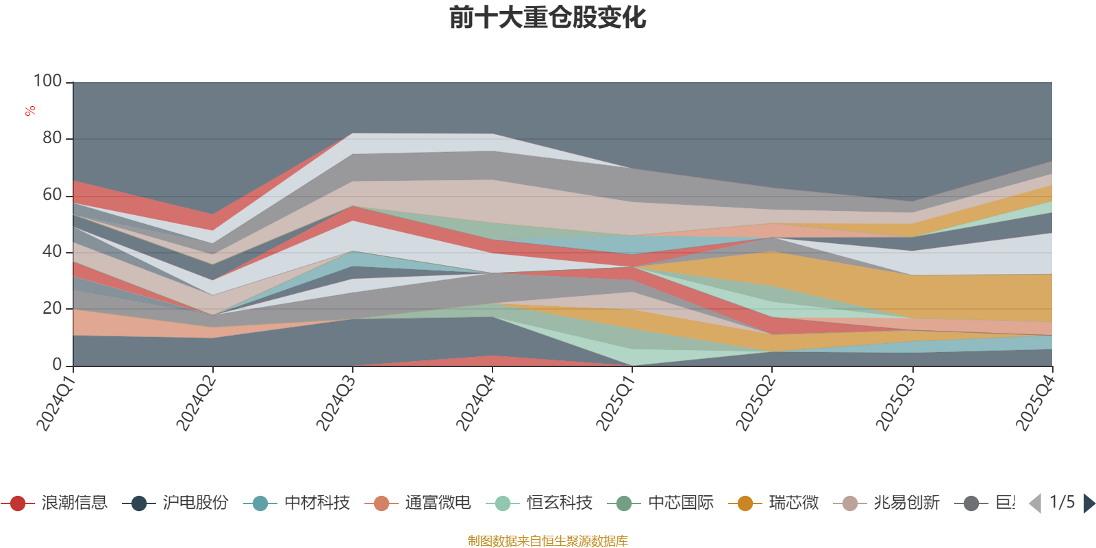 该基金持股集中度较高。截至2025年四季度末,基金十大重仓股分别是新易盛、中际旭创、生益科技、沪电股份、深南电路、中材科技、胜宏科技、北方华创、应流股份、宁德时代。