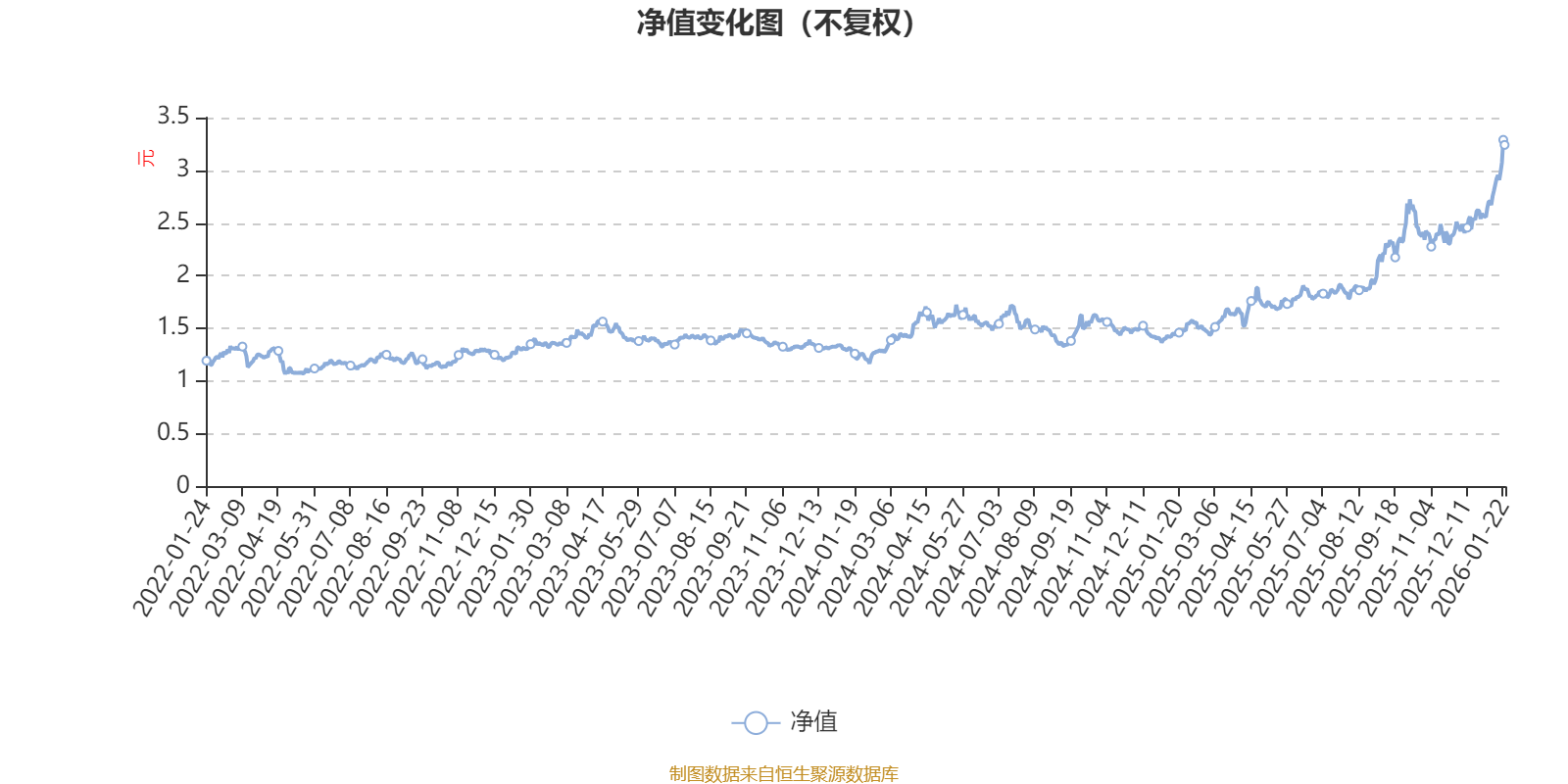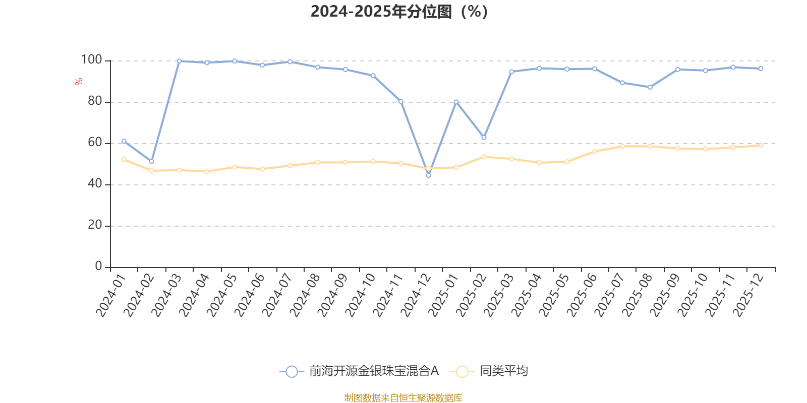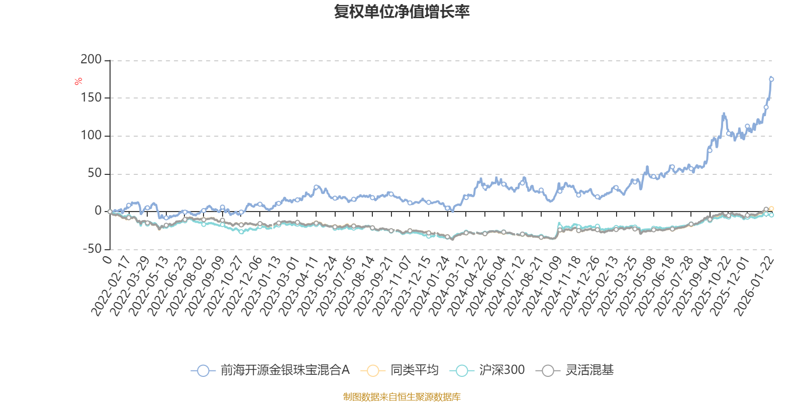 截至1月22日,前海开源金银珠宝混合A近三个月复权单位净值增长率为35.21%,位于同类可比基金14/1286;近半年复权单位净值增长率为69.78%,位于同类可比基金42/1286;近一年复权单位净值增长率为118.25%,位于同类可比基金6/1286;近三年复权单位净值增长率为139.19%,位于同类可比基金11/1286。