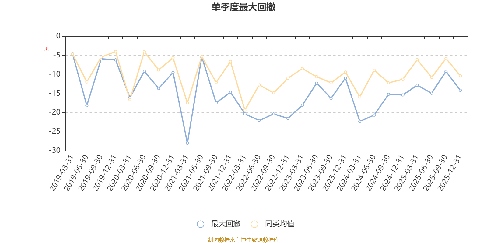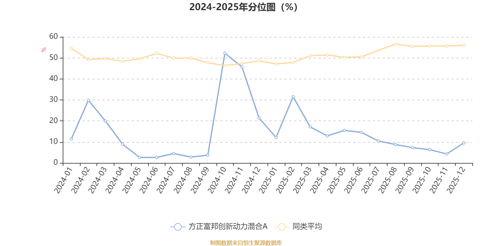通过所选区间该基金净值增长率分位图,可以观察该基金与同类基金业绩比较情况。图为坐标原点到区间内某时点的净值增长率在同类基金中的分位数。