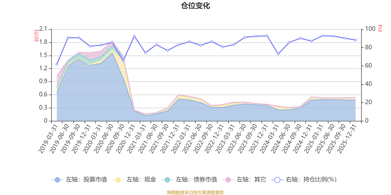 据定期报告数据统计,近三年平均股票仓位为88.31%,同类平均为84.04%。2025年一季度末基金达到92.82%的最高仓位,2019年一季度末最低,为61.8%。