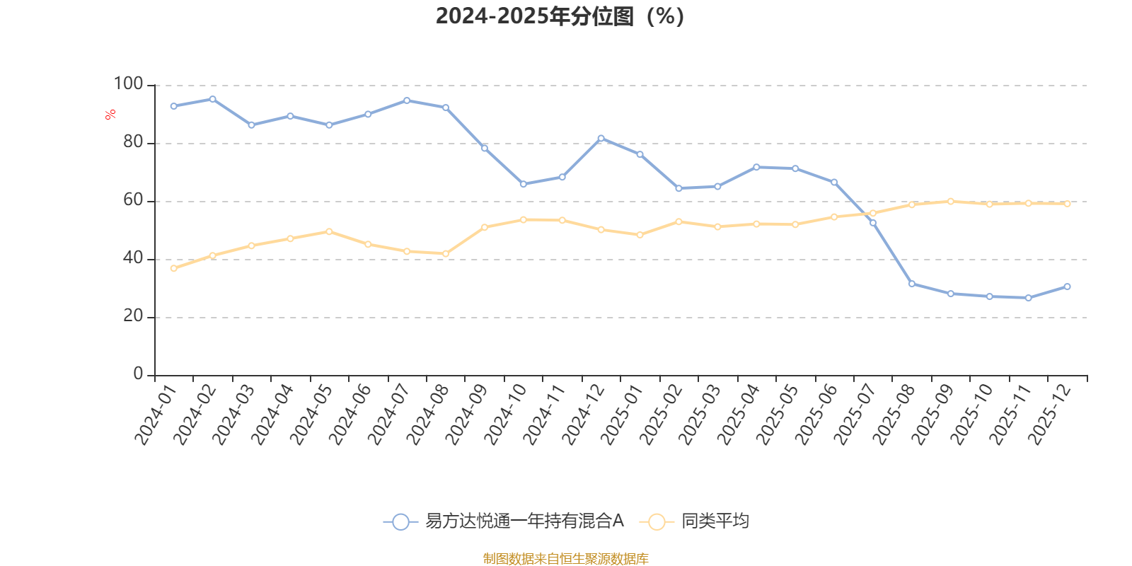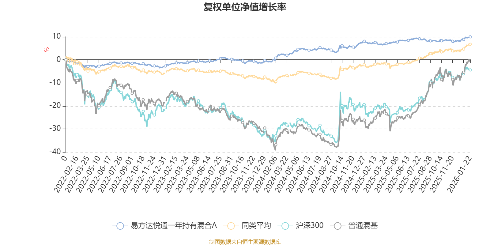 截至1月22日,易方达悦通一年持有混合A近三个月复权单位净值增长率为1.51%,位于同类可比基金419/629;近半年复权单位净值增长率为0.77%,位于同类可比基金587/629;近一年复权单位净值增长率为2.82%,位于同类可比基金585/626;近三年复权单位净值增长率为11.95%,位于同类可比基金272/564。