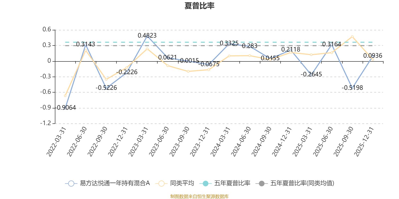 截至12月31日,基金近三年夏普比率为0.7557,位于同类可比基金223/542。