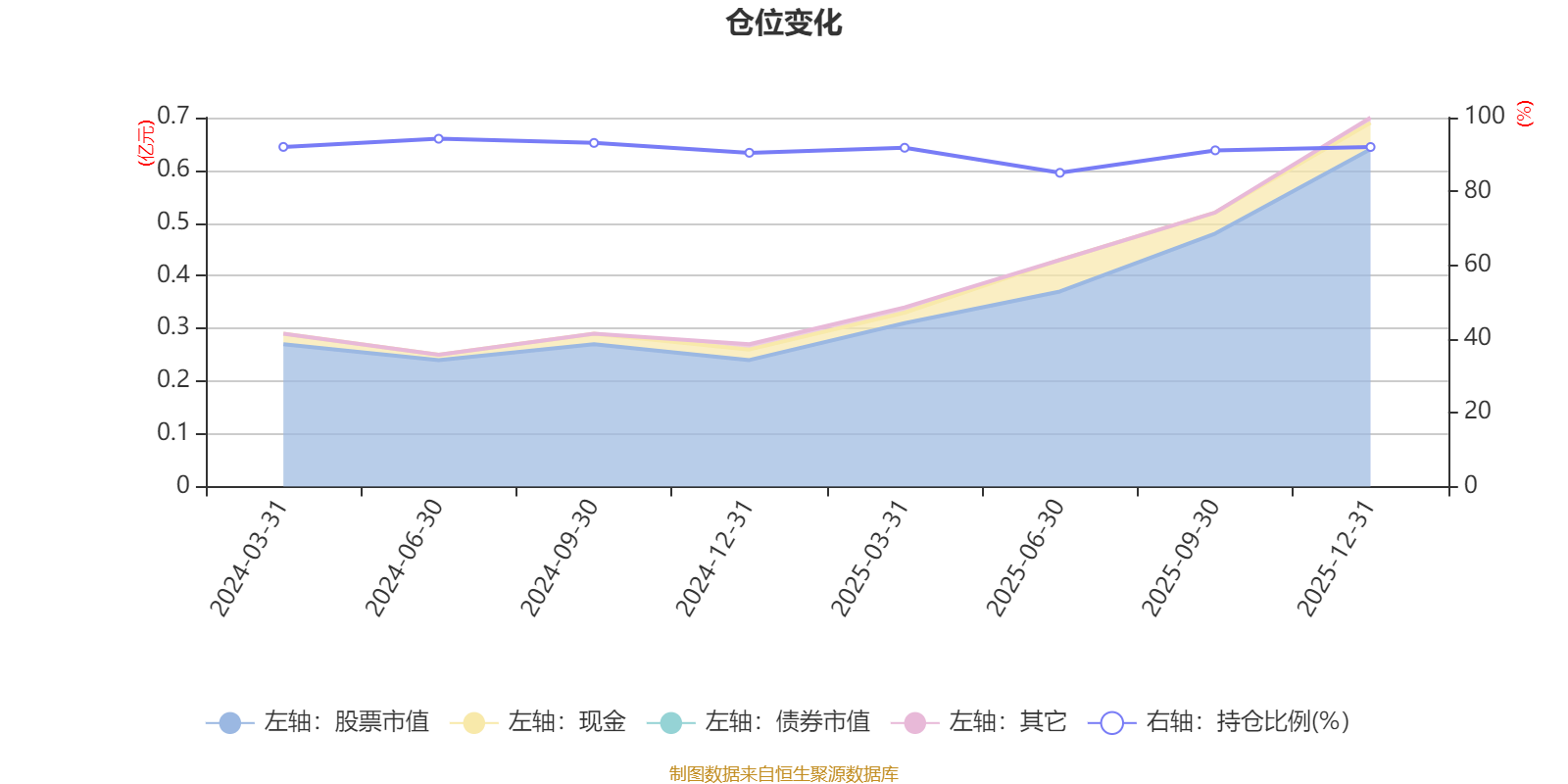 据定期报告数据统计,成立以来平均股票仓位为91.25%,同类平均为86.9%。2024年上半年末基金达到94.27%的最高仓位,2025年上半年末最低,为85.04%。