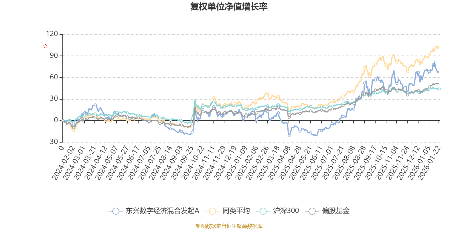 截至1月21日,东兴数字经济混合发起A近三个月复权单位净值增长率为12.96%,位于同类可比基金109/229;近半年复权单位净值增长率为59.19%,位于同类可比基金87/229;近一年复权单位净值增长率为48.65%,位于同类可比基金149/222。