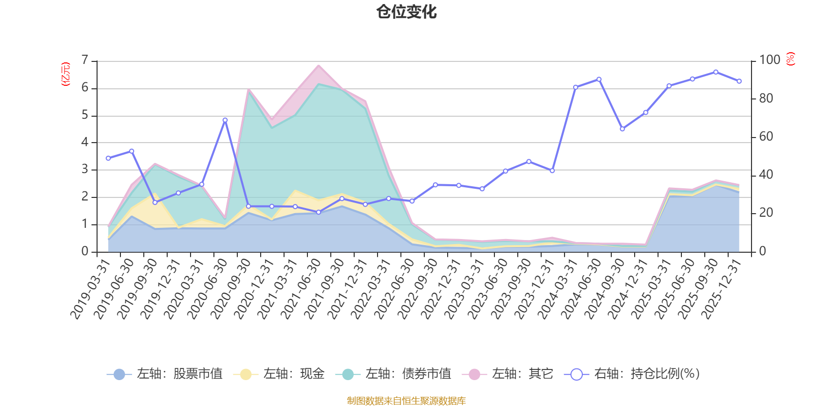 据定期报告数据统计,近三年平均股票仓位为70.04%,同类平均为72.57%。2025年三季度末基金达到94.17%的最高仓位,2021年上半年末最低,为20.82%。
