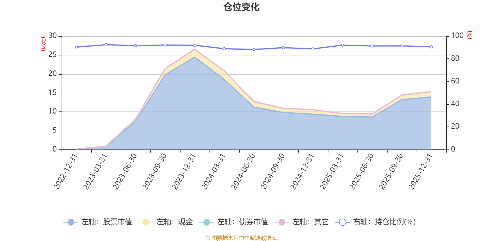 据定期报告数据统计,近三年平均股票仓位为90.79%,同类平均为85.83%。2023年一季度末基金达到92.43%的最高仓位,2024年上半年末最低,为88.23%。