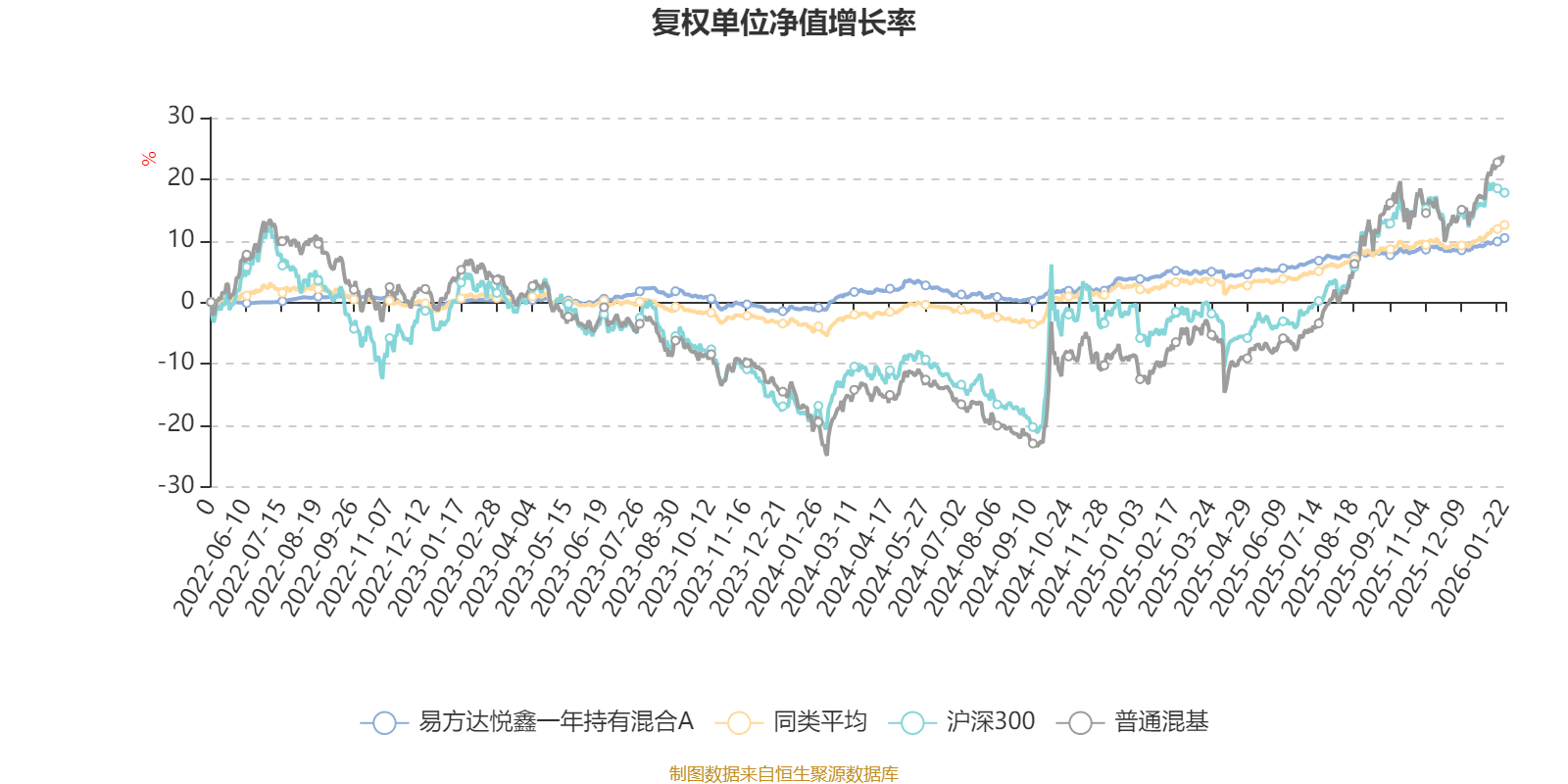 该基金属于偏债混合型基金。截至1月22日,单位净值为1.104元。基金经理是王成,目前管理的9只基金近一年均为正收益。其中,截至1月22日,易方达丰华债券A近一年复权单位净值增长率最高,达8.47%;易方达悦享一年持有混合A最低,为4.32%。