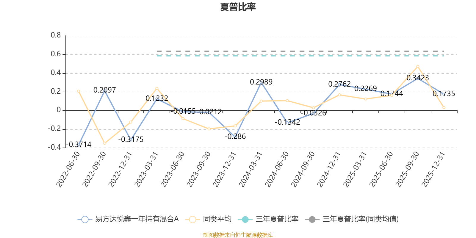 截至12月31日,基金近三年夏普比率为0.5845,位于同类可比基金320/542。