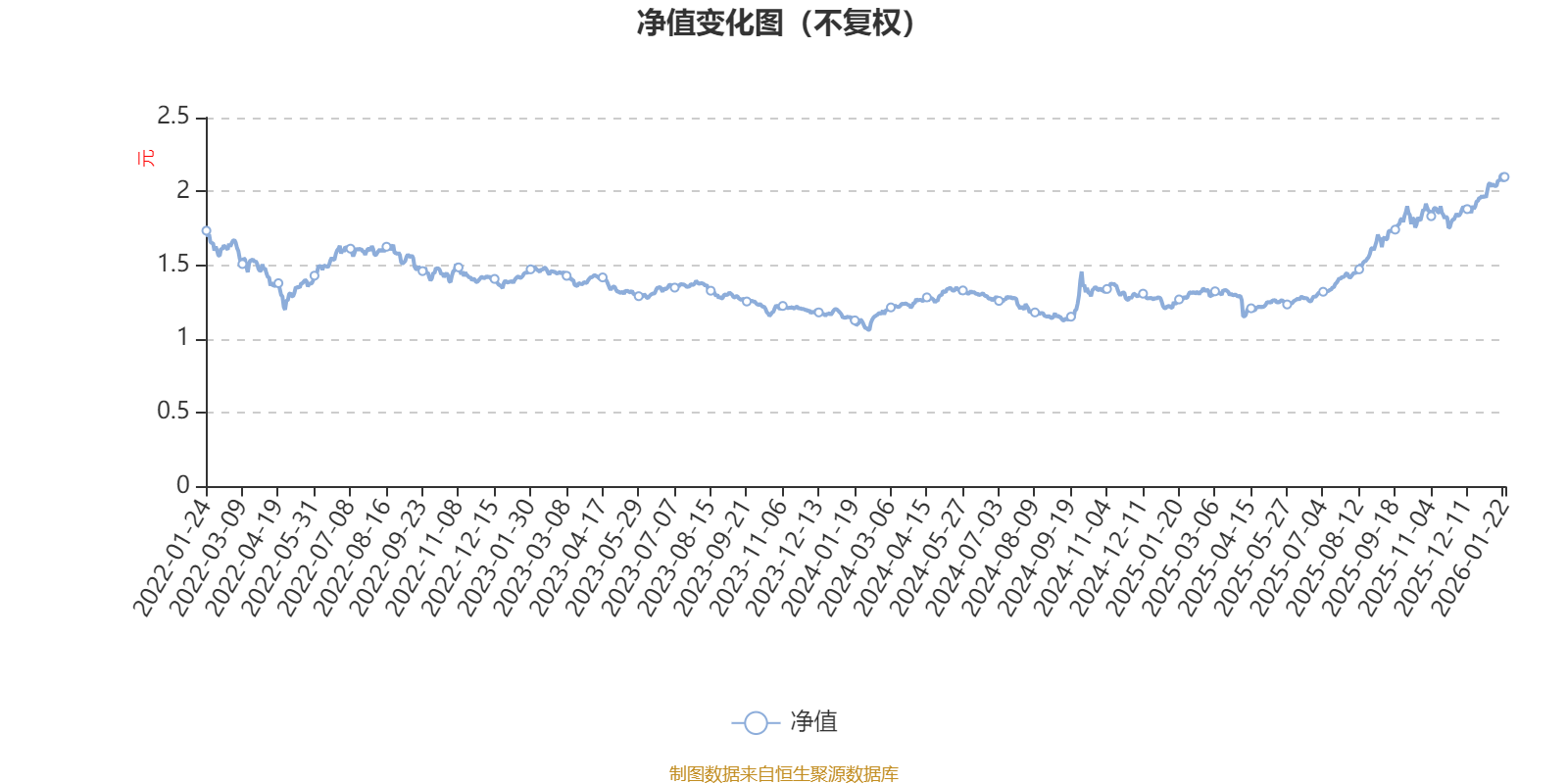 该基金属于标准股票型基金。截至1月22日,单位净值为2.098元。基金经理是周蔚文和罗佳明。