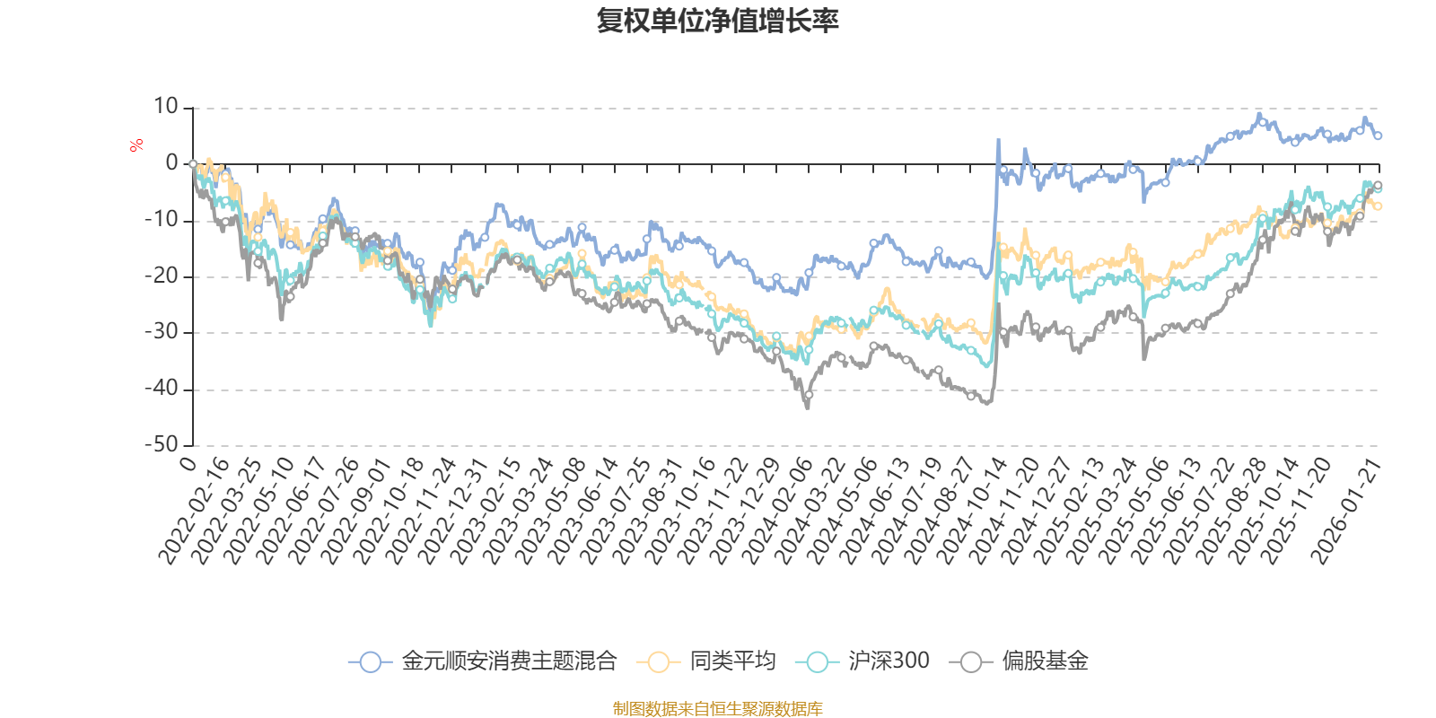 截至1月21日,金元顺安消费主题混合近三个月复权单位净值增长率为0.48%,位于同类可比基金9/16;近半年复权单位净值增长率为0.32%,位于同类可比基金11/16;近一年复权单位净值增长率为7.79%,位于同类可比基金13/14;近三年复权单位净值增长率为13.32%,位于同类可比基金6/12。