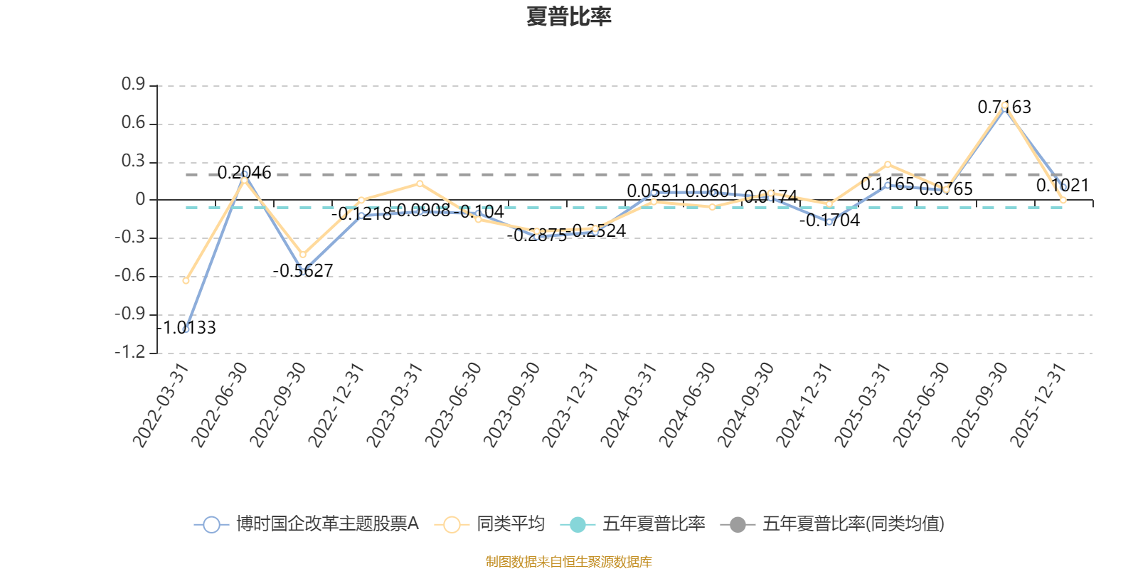 截至12月31日,基金近三年夏普比率为0.5268,位于同类可比基金92/156。