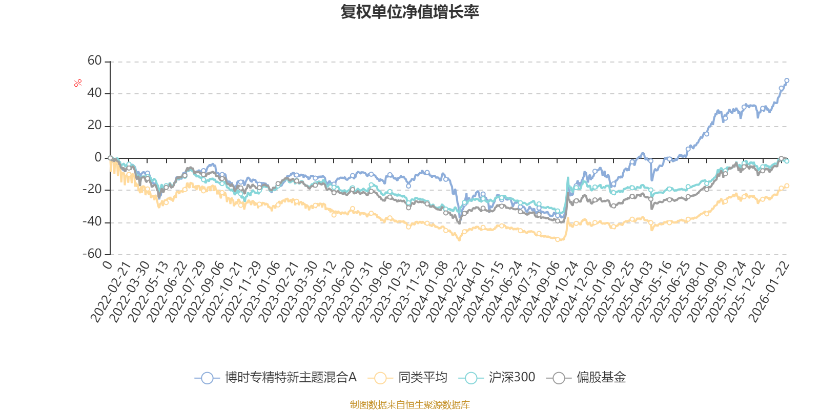 截至1月22日,博时专精特新主题混合A近三个月复权单位净值增长率为14.61%,位于同类可比基金124/621;近半年复权单位净值增长率为31.12%,位于同类可比基金206/621;近一年复权单位净值增长率为68.80%,位于同类可比基金58/613;近三年复权单位净值增长率为73.26%,位于同类可比基金31/535。