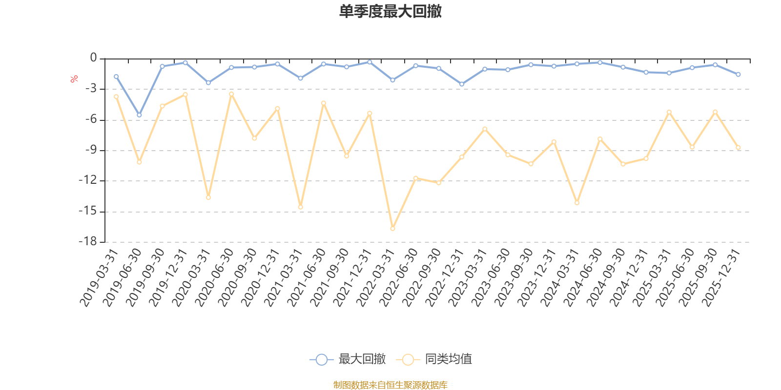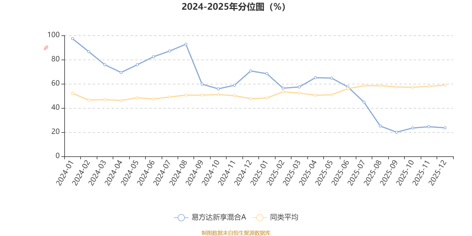 通过所选区间该基金净值增长率分位图,可以观察该基金与同类基金业绩比较情况。图为坐标原点到区间内某时点的净值增长率在同类基金中的分位数。