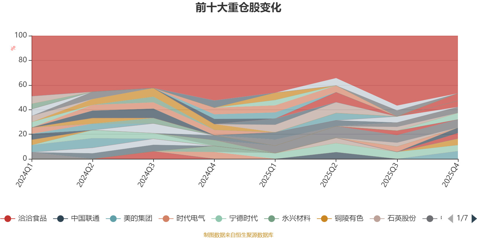 截至2025年四季度末,基金十大重仓股分别是国电电力、美的集团、中国平安、三角防务、铜陵有色、伊利股份、紫金矿业、宁德时代、伯特利、东阿阿胶。