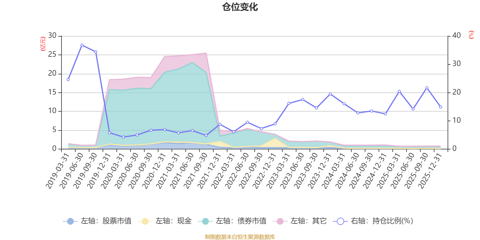 据定期报告数据统计,近三年平均股票仓位为16.11%,同类平均为19.2%。2019年上半年末基金达到36.77%的最高仓位,2020年一季度末最低,为4.22%。